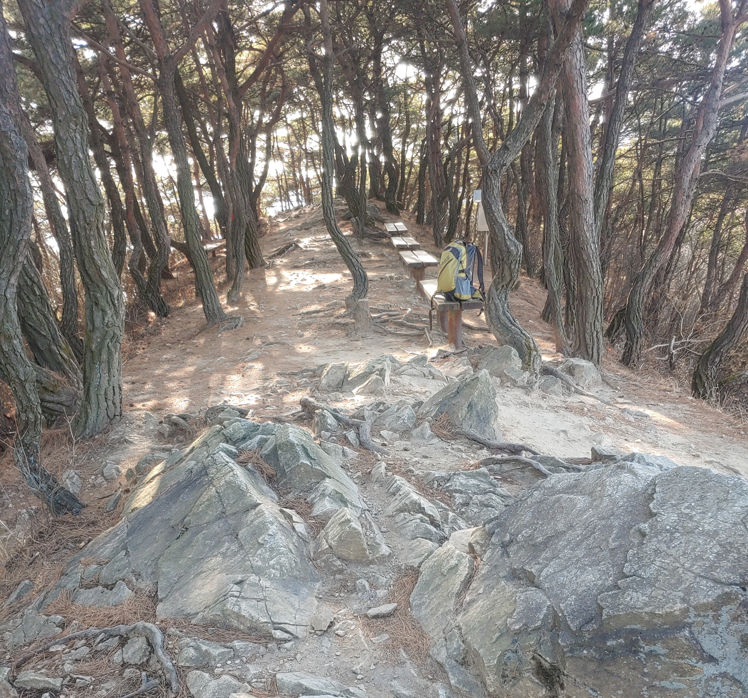 올라오는 길에 다른 의자도 있지만 저는 이곳까지 한 번에 올라와 쉬는걸 좋아합니다 이곳이 효자봉까지 반 정도 온 거리입니다.