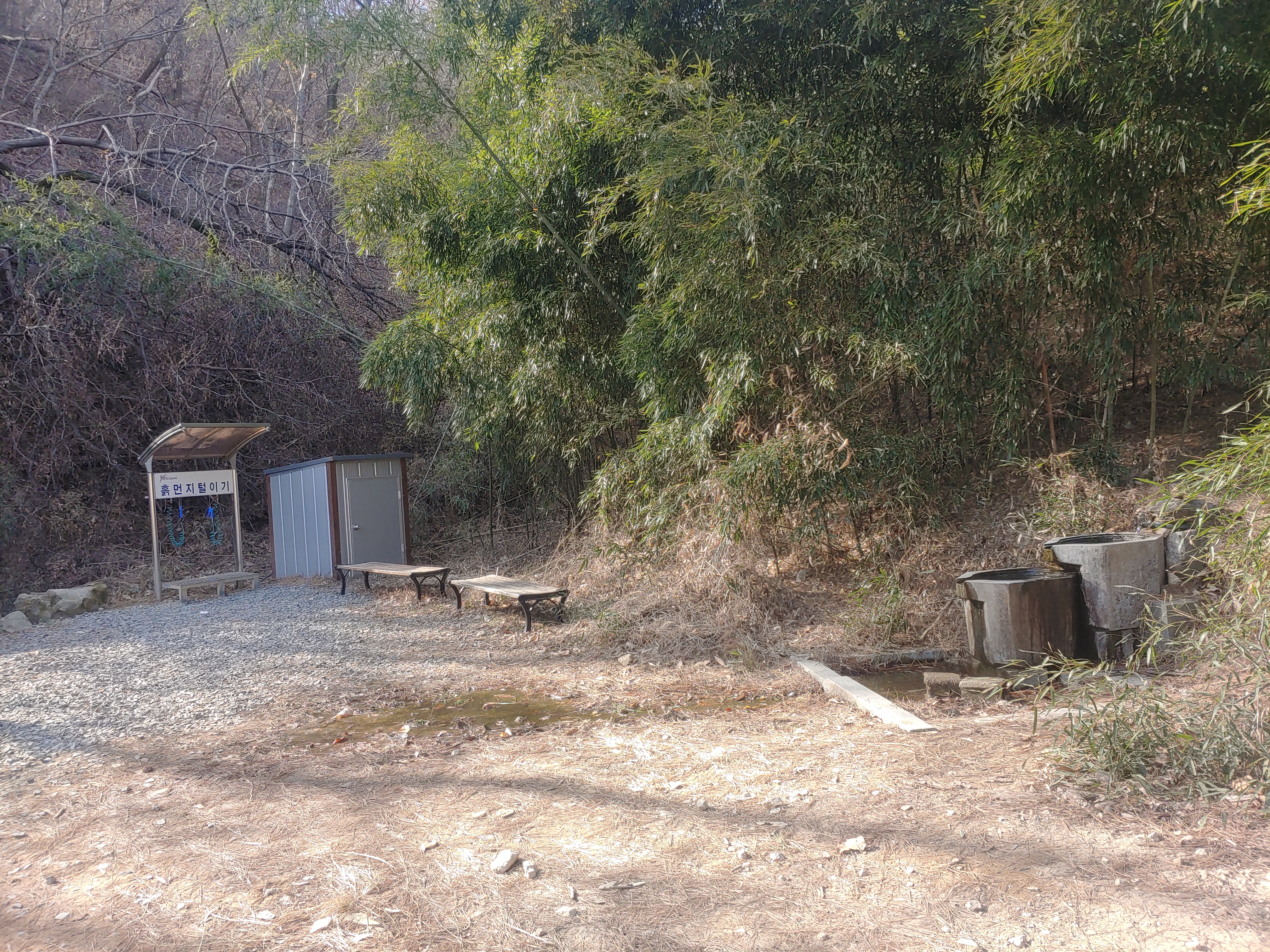 저 멀리 조그맣게 보이는 정자 쪽에 차량을 주차할수 있는 장소가 있어니 공사기간 동안은 정자쪽 까지 차를 타고 가는 것도 좋을 것 같습니다.