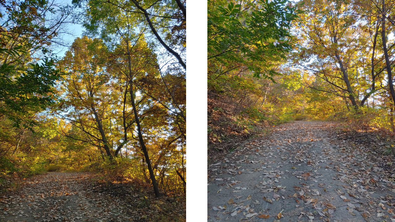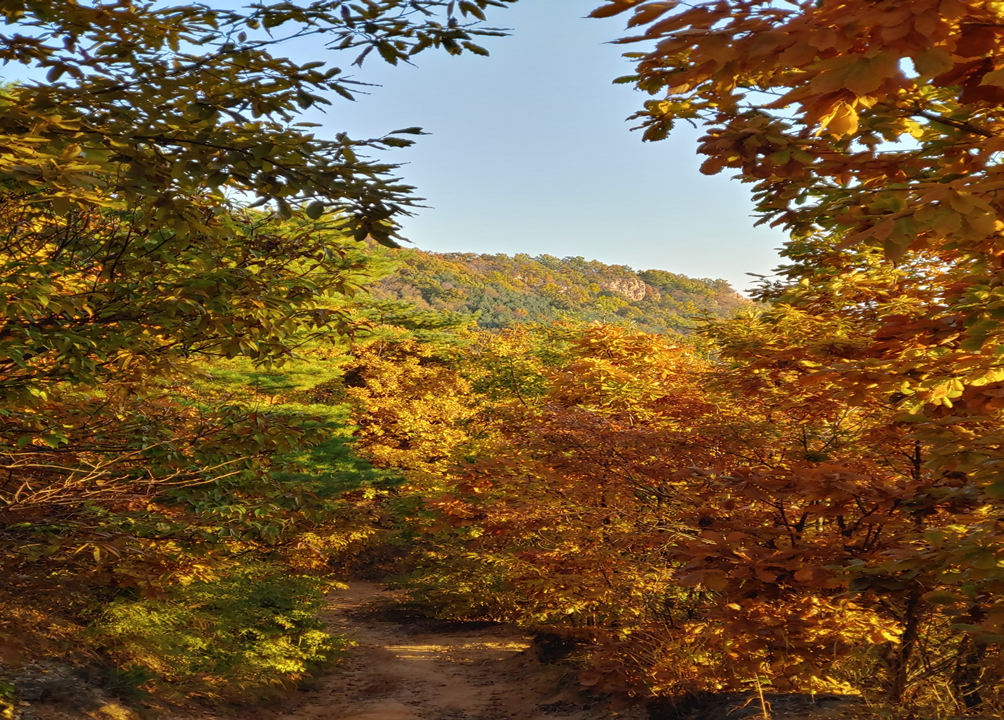 바스락바스락 걸을 때마다 낙엽을 밟는 소리가 들립니다. 등산객이 없어 조용한 등산로에 발걸음을 옴길 때마다 가을의 소리가 들립니다. 가을에만 들리는 낙엽 밟는 소리가 마음의 여유로움을 느끼게 합니다.