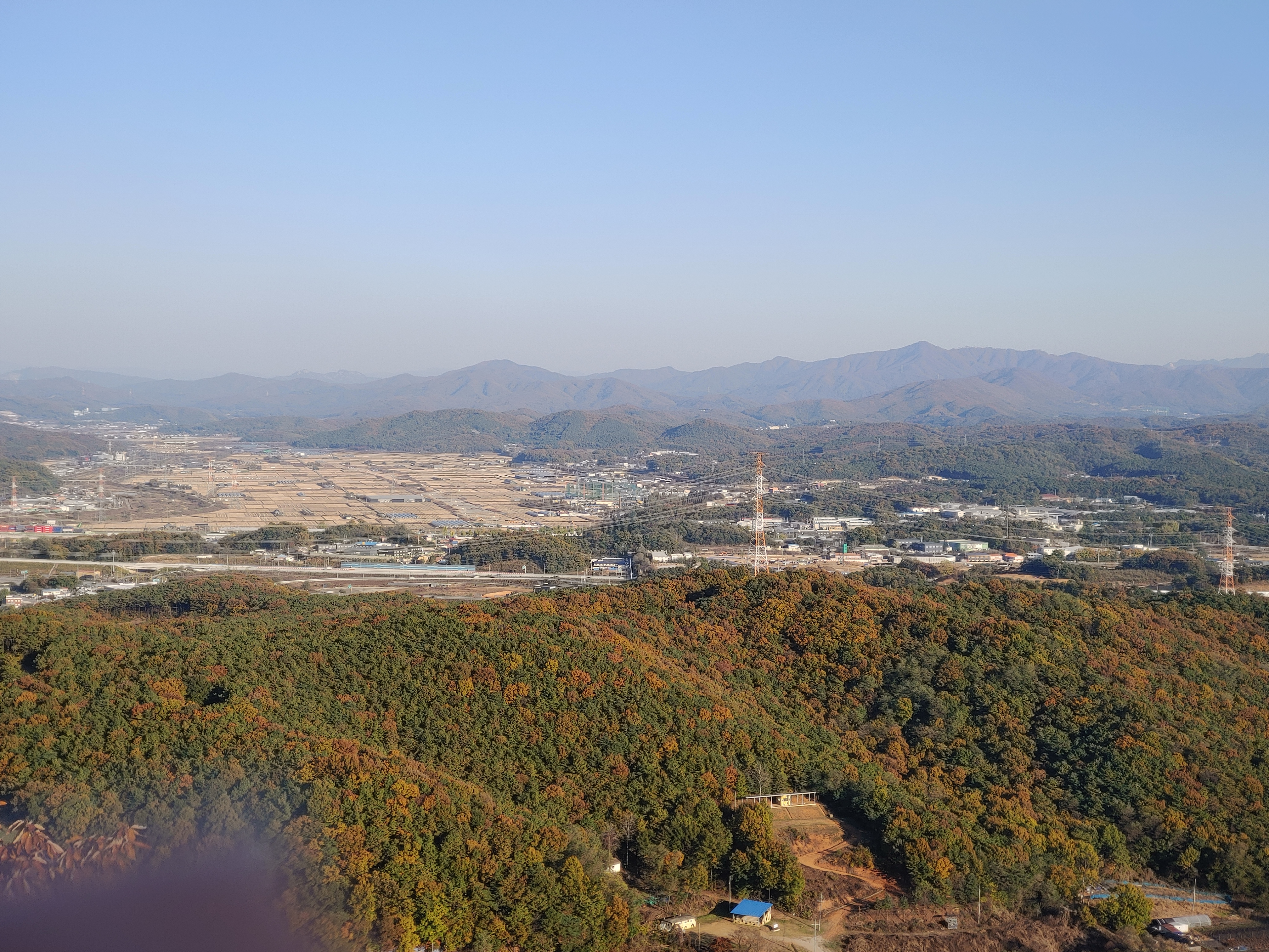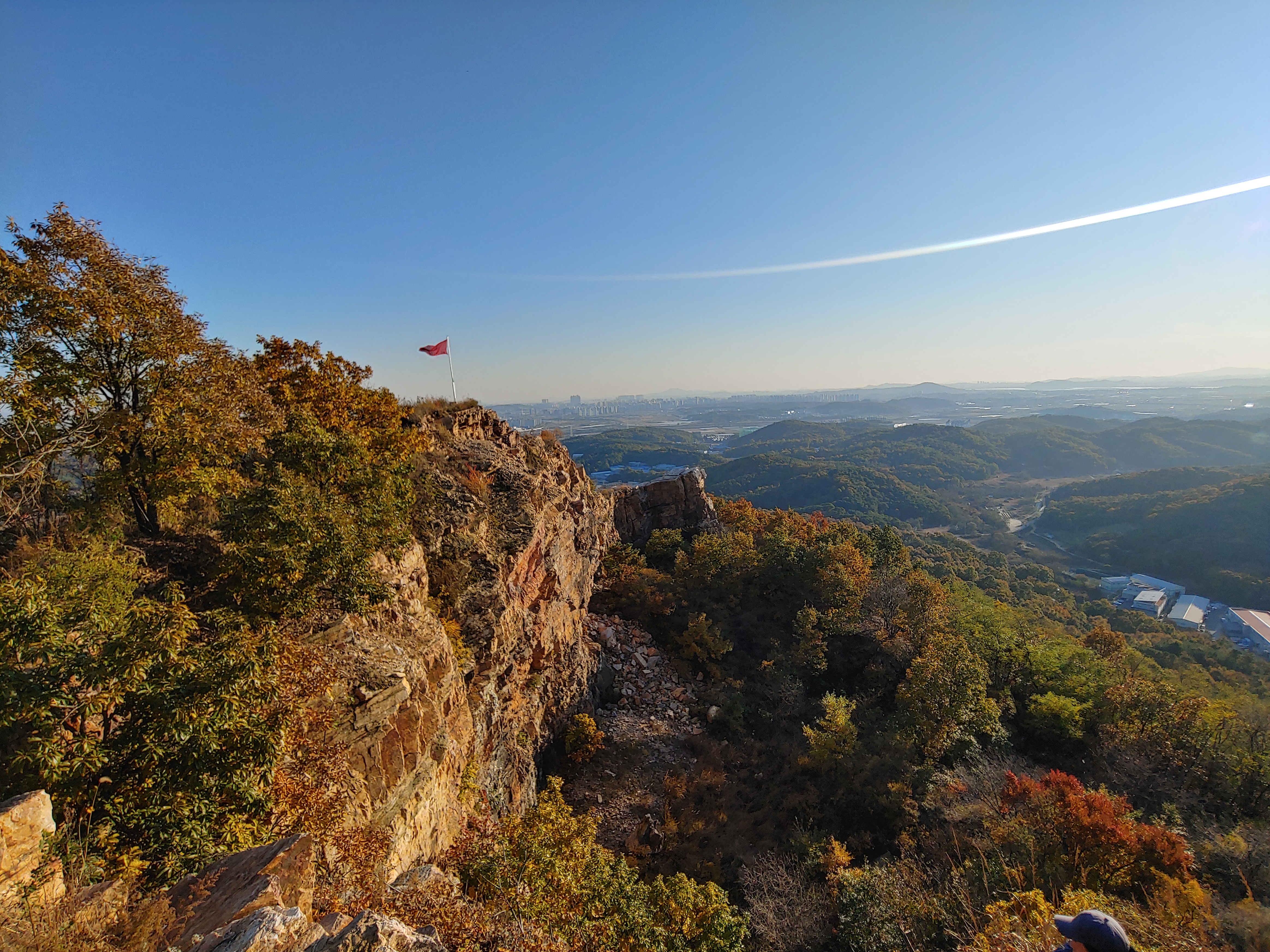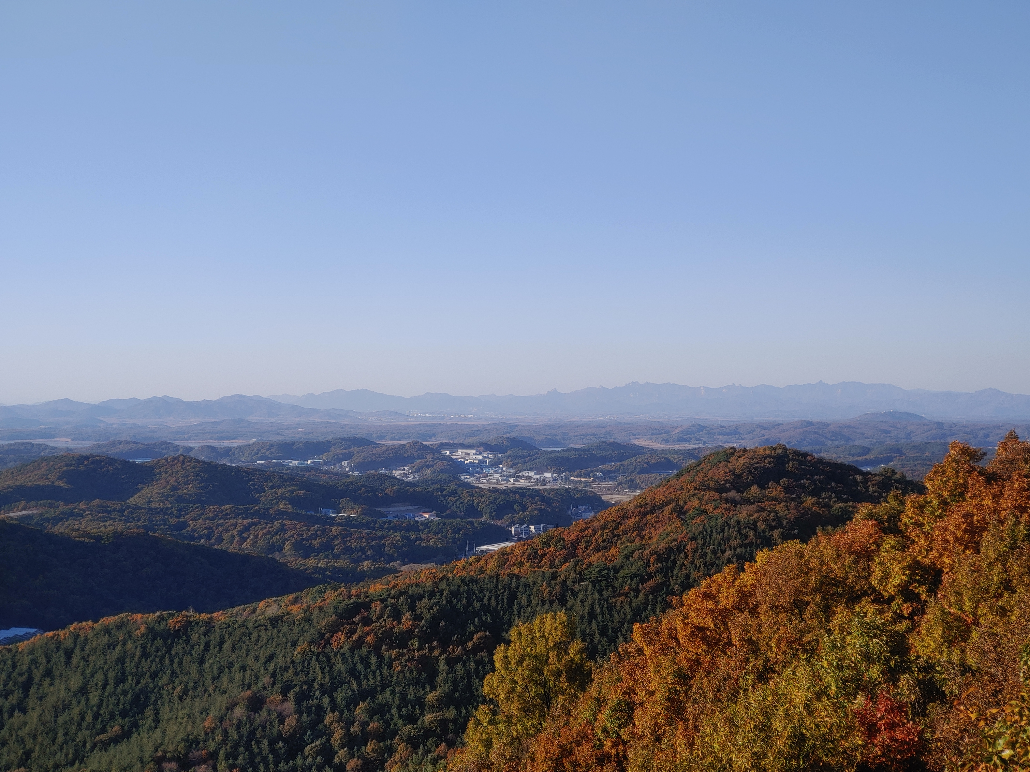 김포 방향의 사진인데 조금 늦은 오후라 사진에 역광이 있어 조급 뿌였게 나오네요. 산전체가 단풍의 모습을 하고 있어 경치가 좋습니다.