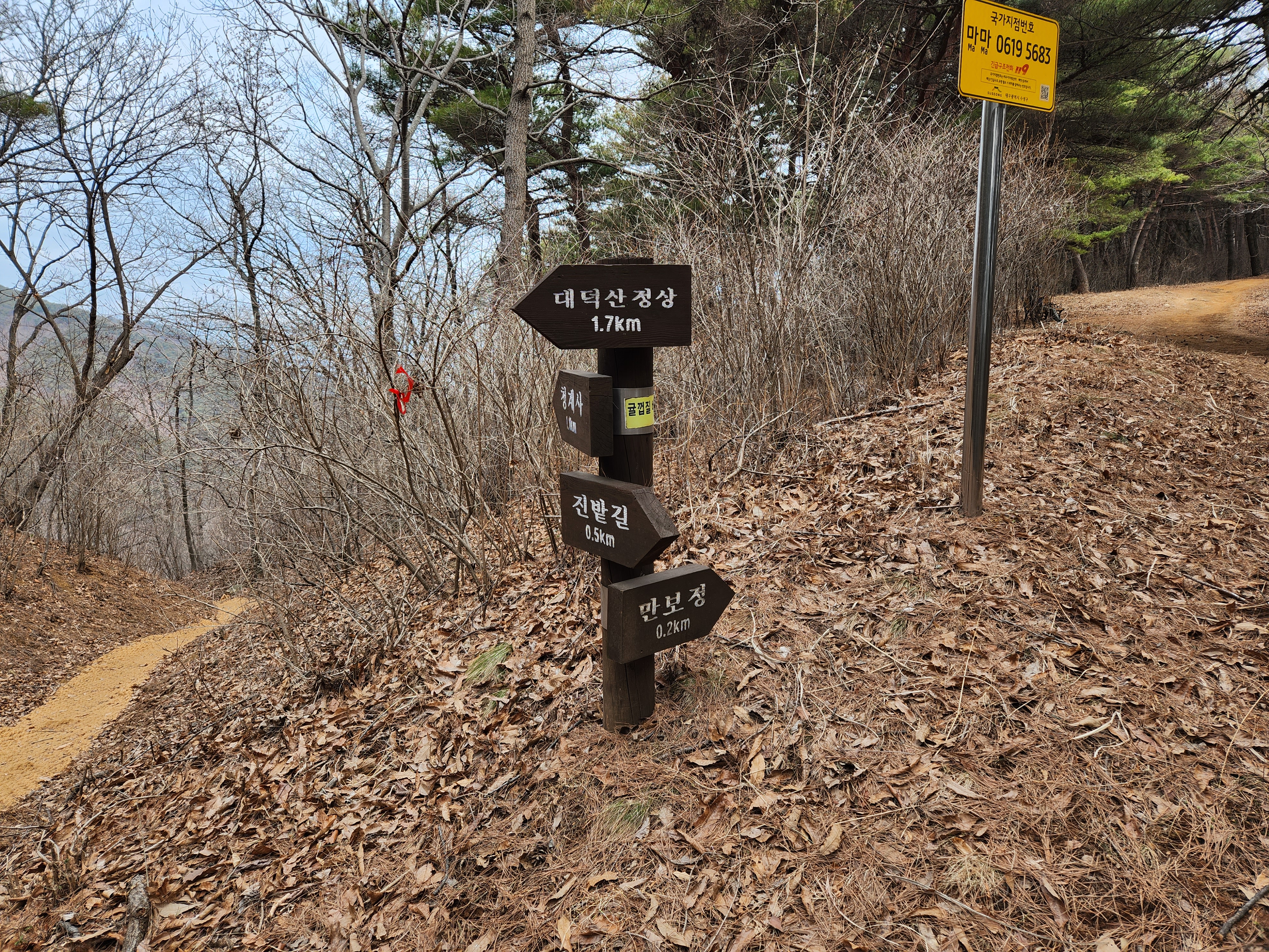 대덕산의 등산로는 헷갈리는 길이 많지는 않습니다. 지도를 보고 그리고 등산 앱을 이용하면 자신이 원하는 등산로로 등산을 하기에 어려움이 없는 산입니다.