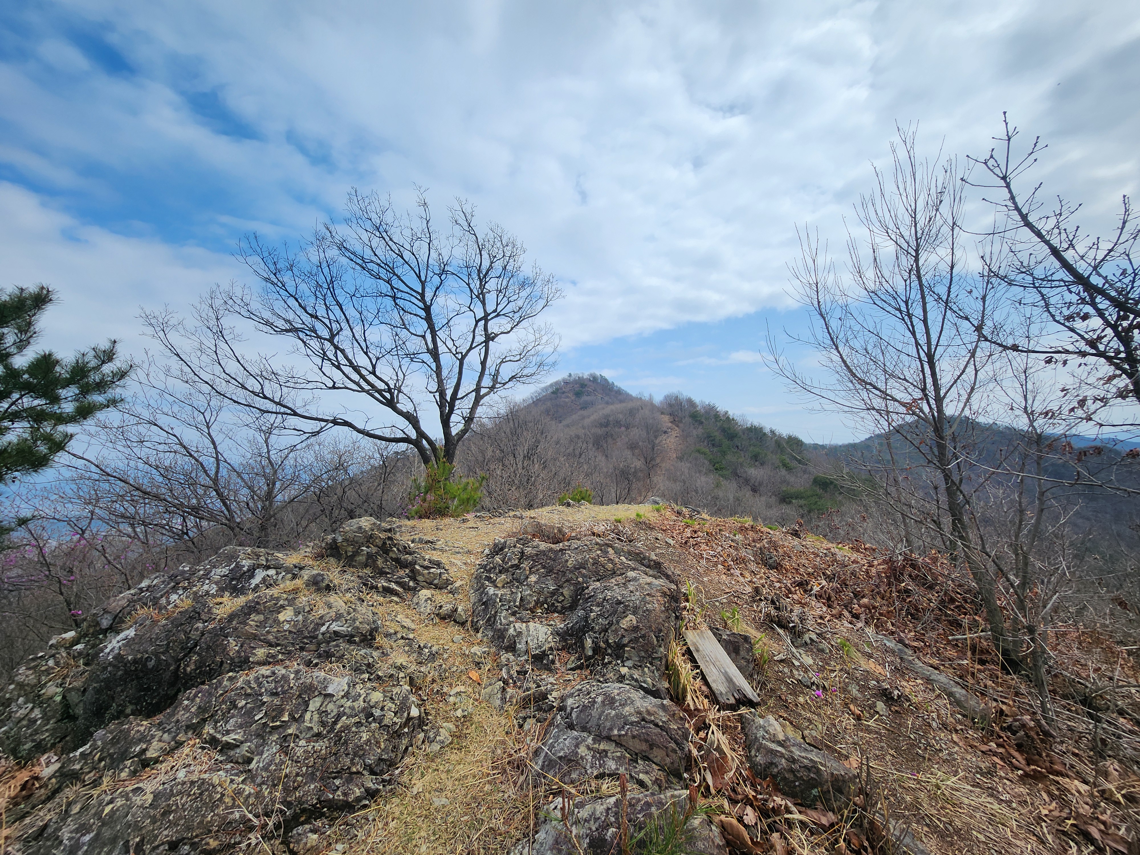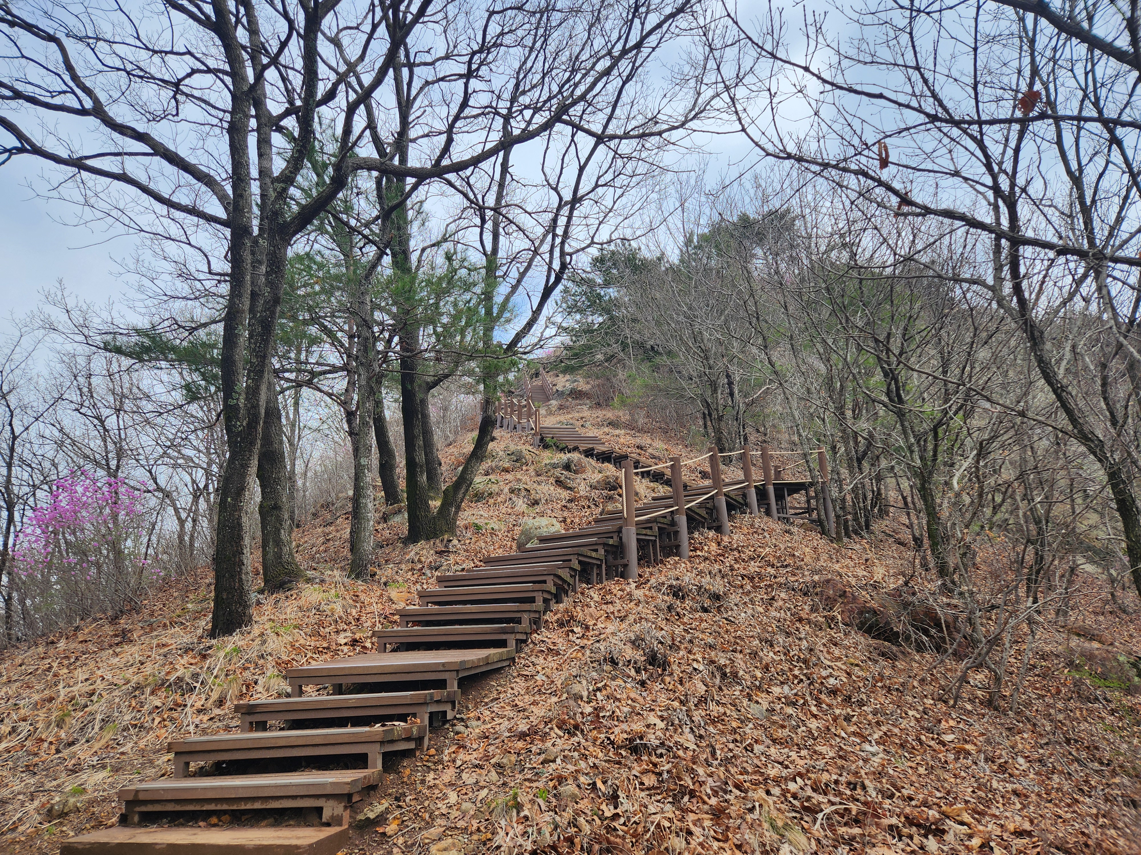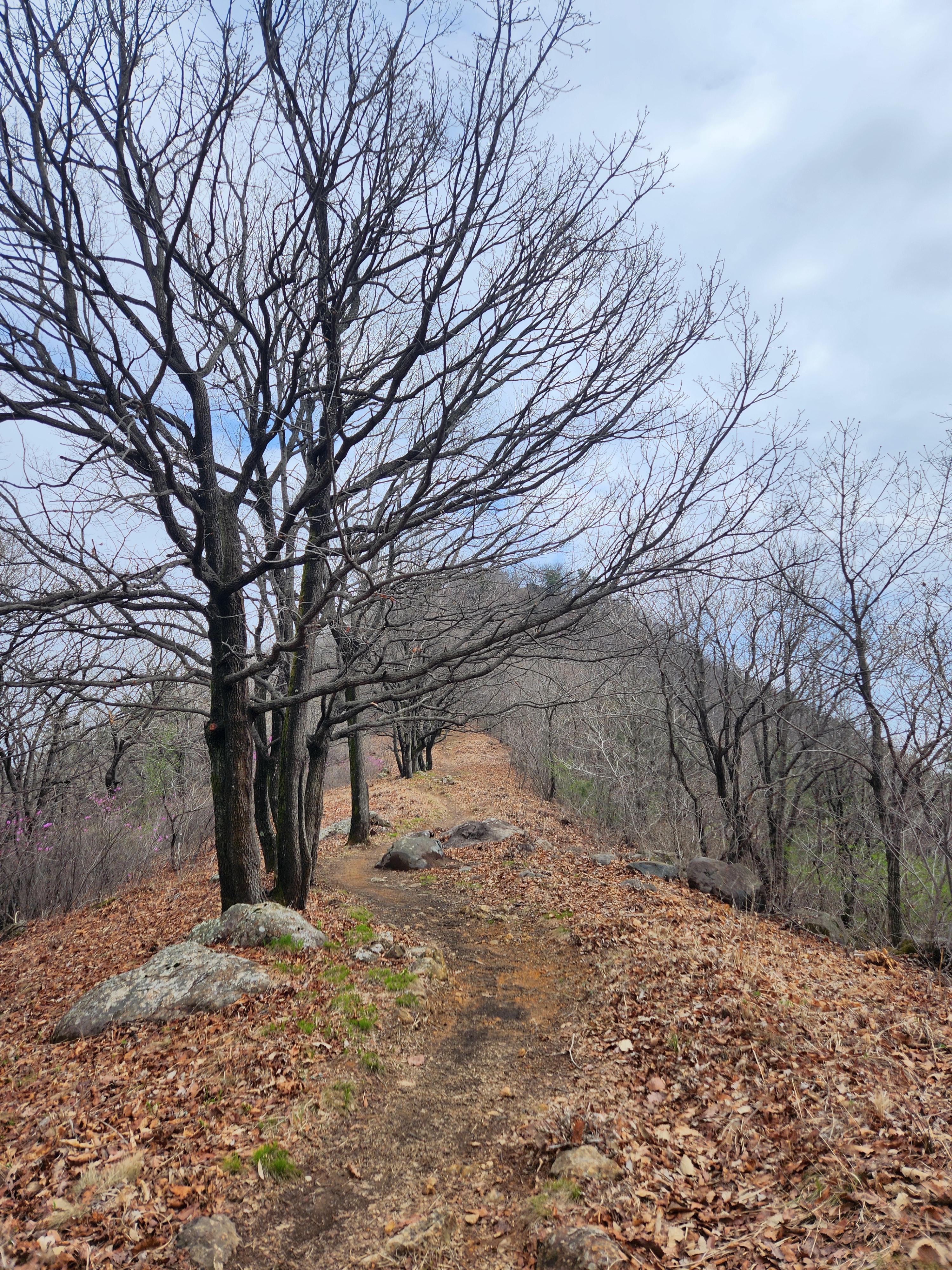 등산로는 소나무 숲의 흙길로 이루어진 등산길이 대부분이지만 진달래가 구간마다 피어 있어 정겨운 등산을 할 수 있는 4월의 등산이었습니다.