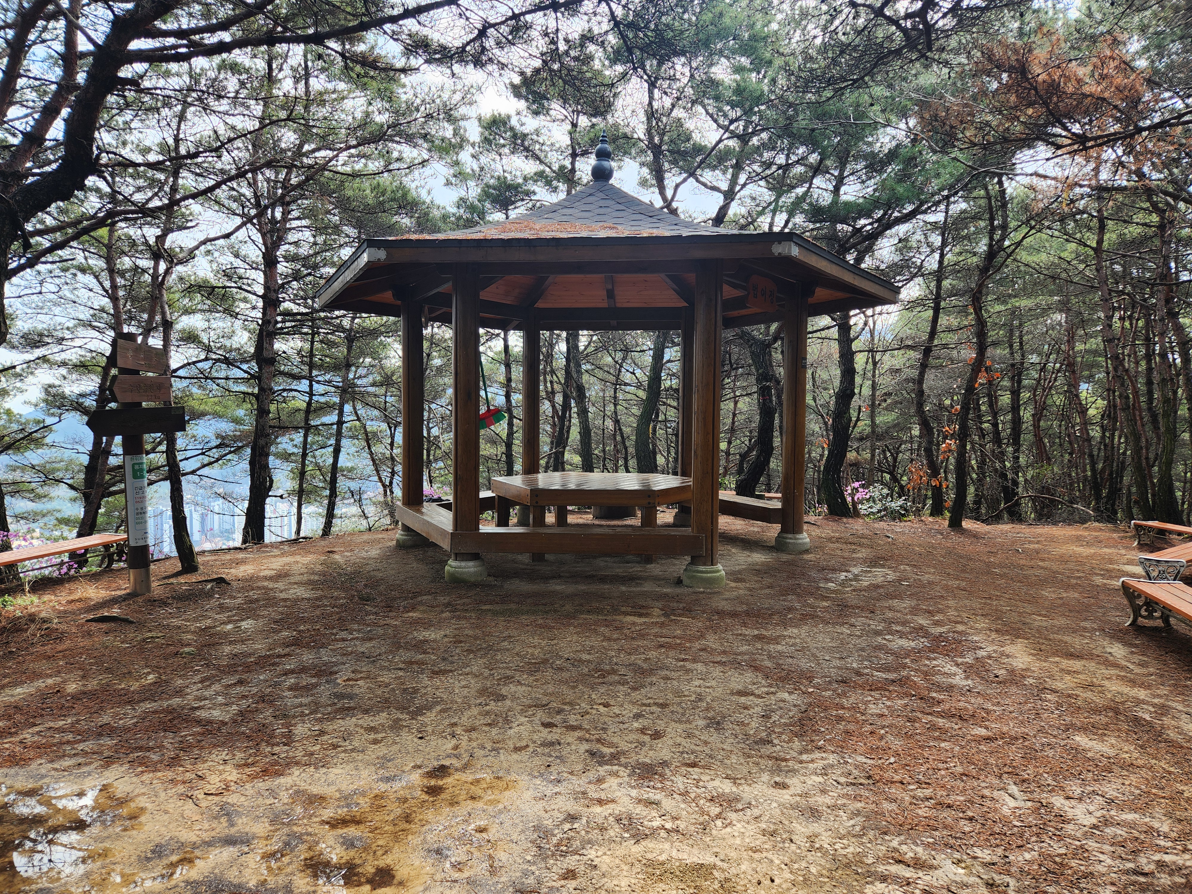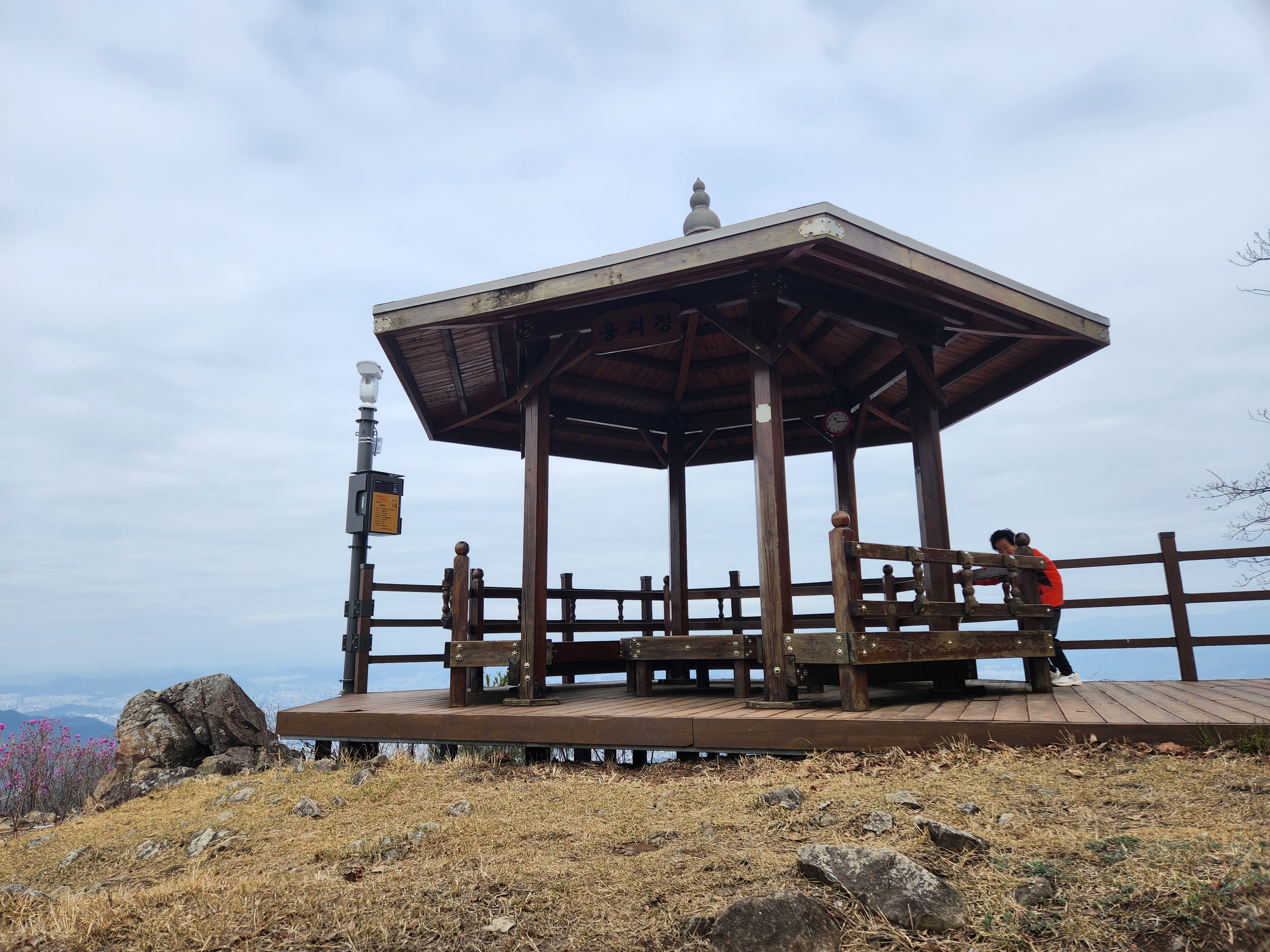 용지봉 정상에서 3분 거리에 있는 정자로 대구 방면의 전망을 볼 수 있습니다. 대구의 모습을 보려면 이곳을 그냥 지나치시면 안 됩니다.