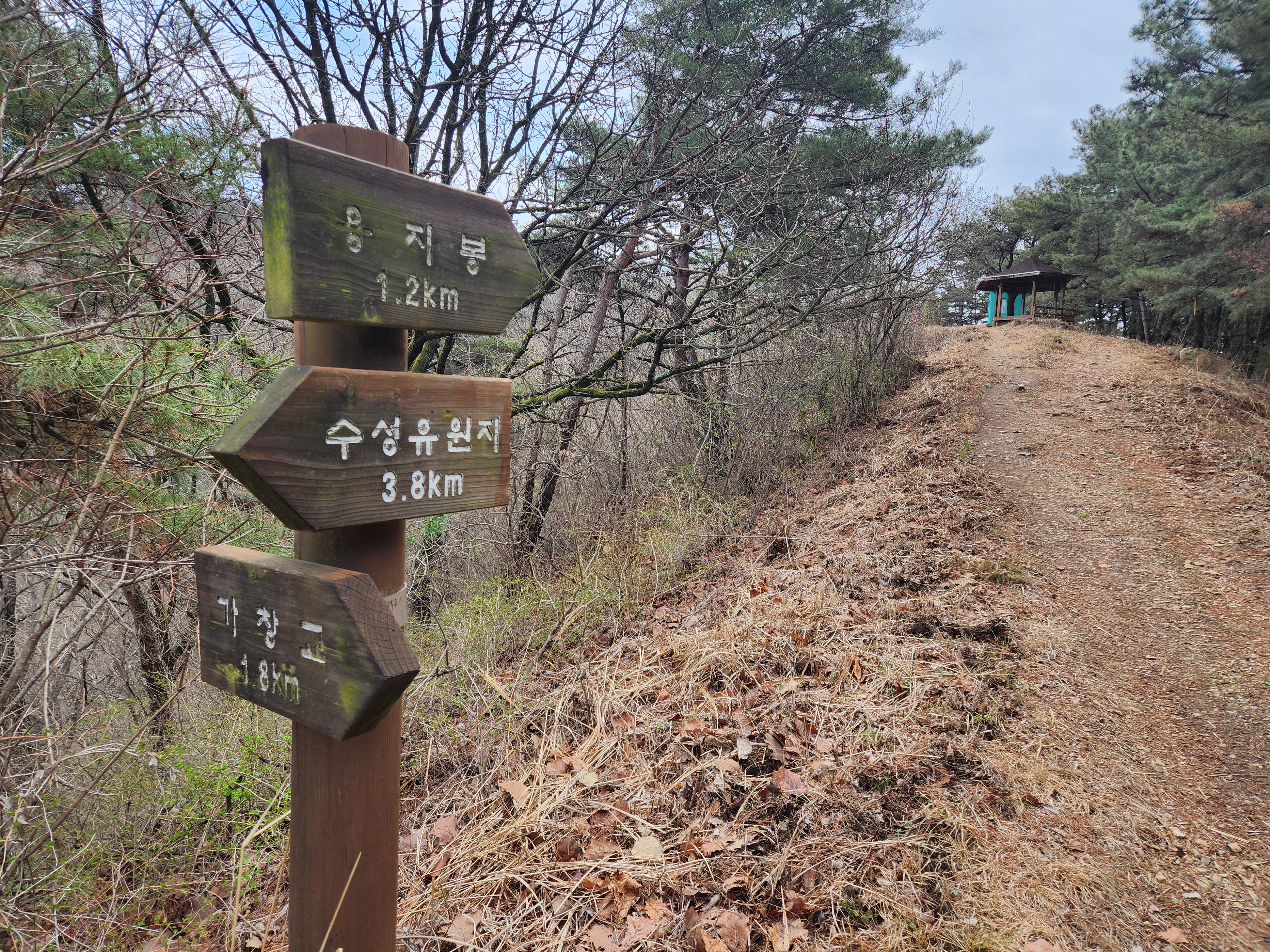 또 용지봉에서 시작하여 수성못에 이르는 산 줄기는 동네 뒷산의 느낌이 있어서 그런지 구간마다 의자들이 있었고 정자와 체육 시설들이 많이 만들어 놓아 주민들도 많이 이용하고 있었습니다.