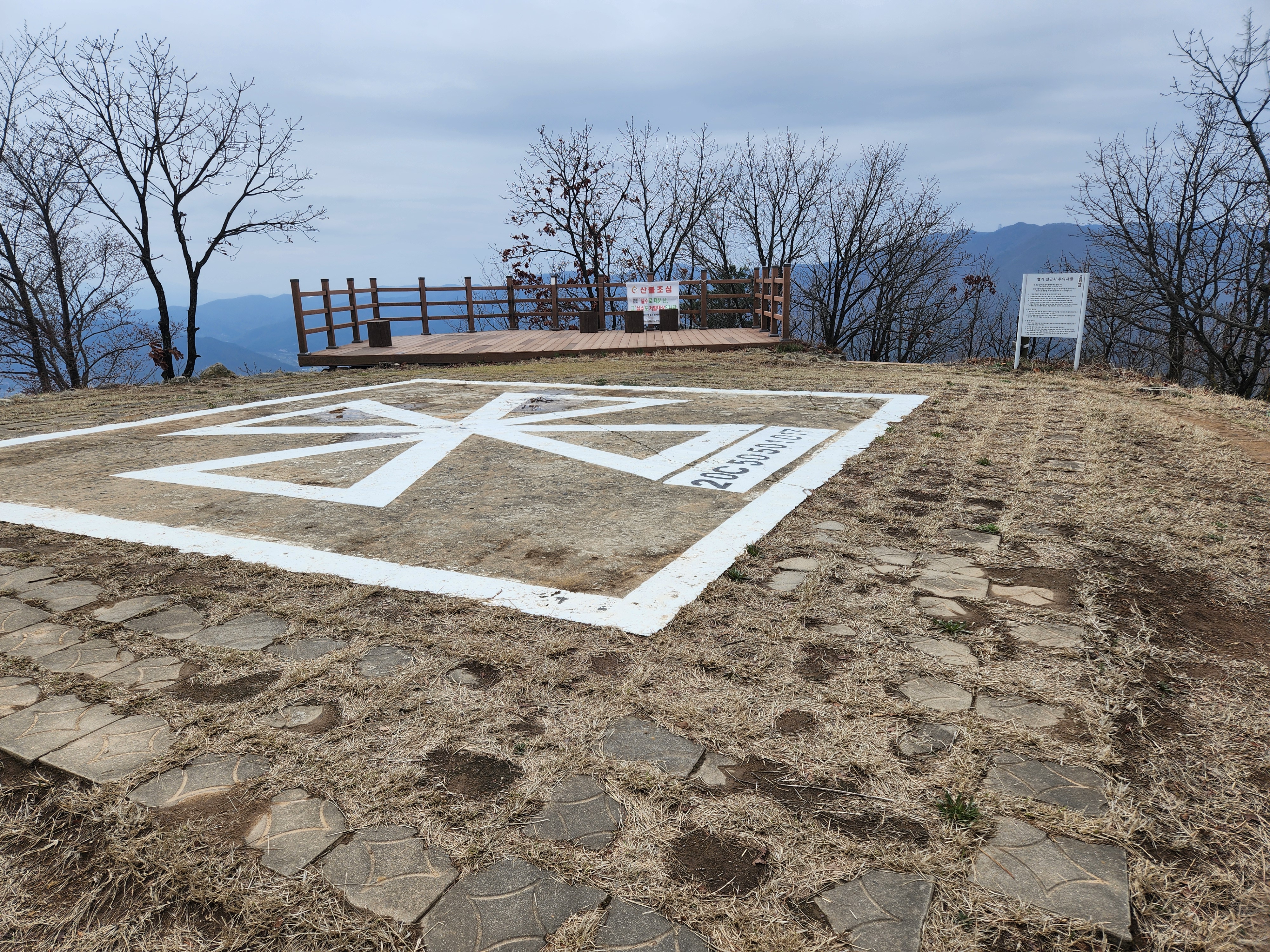 드디어 용지봉에 도착했습니다. 해발 629m 용지봉이라는 키 작은 정상 비석이 귀엽게 서있습니다. 정상은 헬기 착륙장과 데트로 만든 휴식 공간이 있습니다.