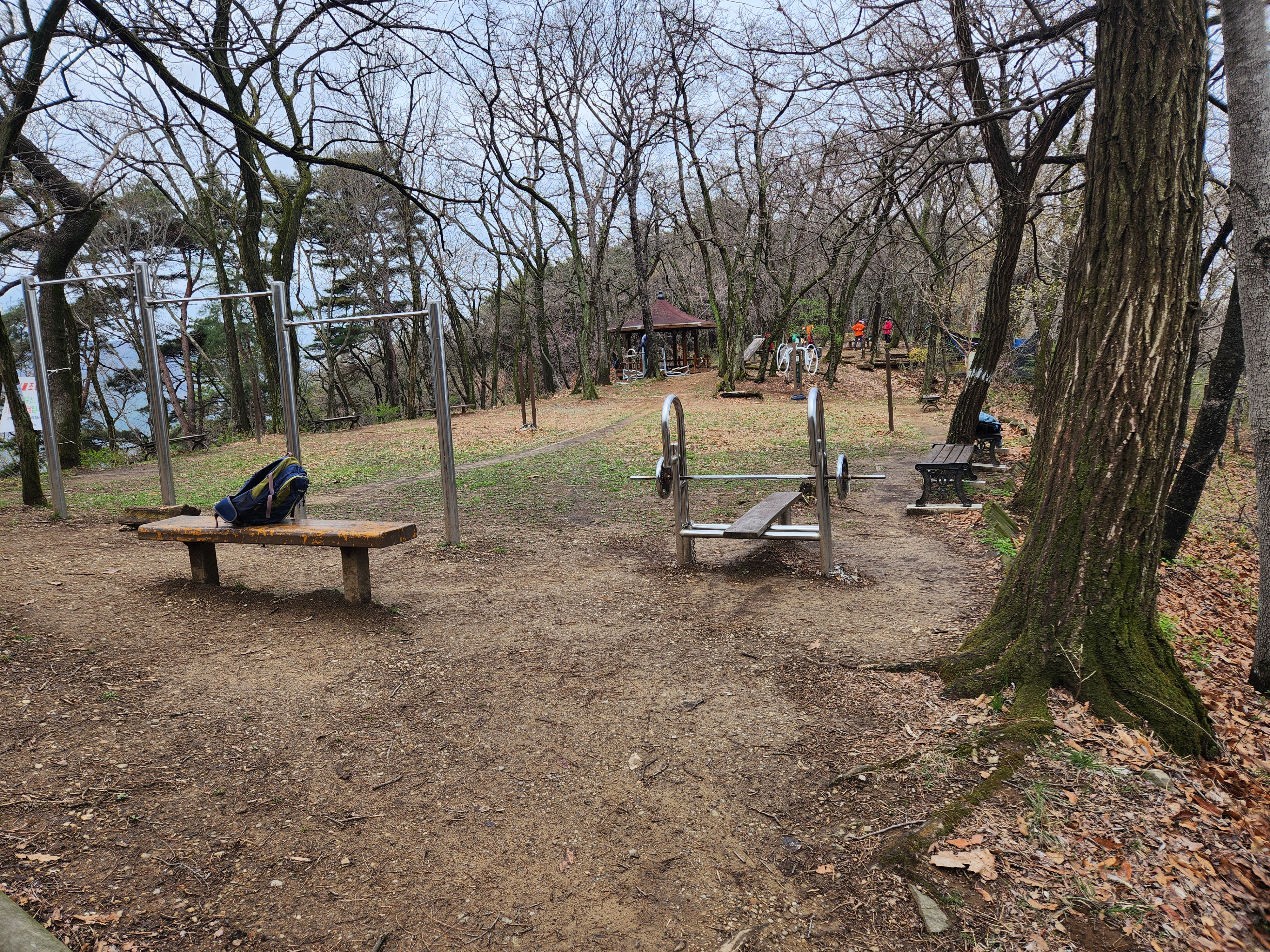 용지사정자입니다. 나이가 지긋한 할머니께 정자에서 스트레칭을 하고 계셨습니다. 어떻게 올라오신 것인지 정말 대단해 보였습니다. 도시 근교의 산이라고 하지만 높이가 낮은 산도 아니고 나름 이 주변에서는 높은 산이고 오르는 길도 경사가 있는 산인데 체력이 정말 좋으시고 건강하신 분이신 것 같습니다.