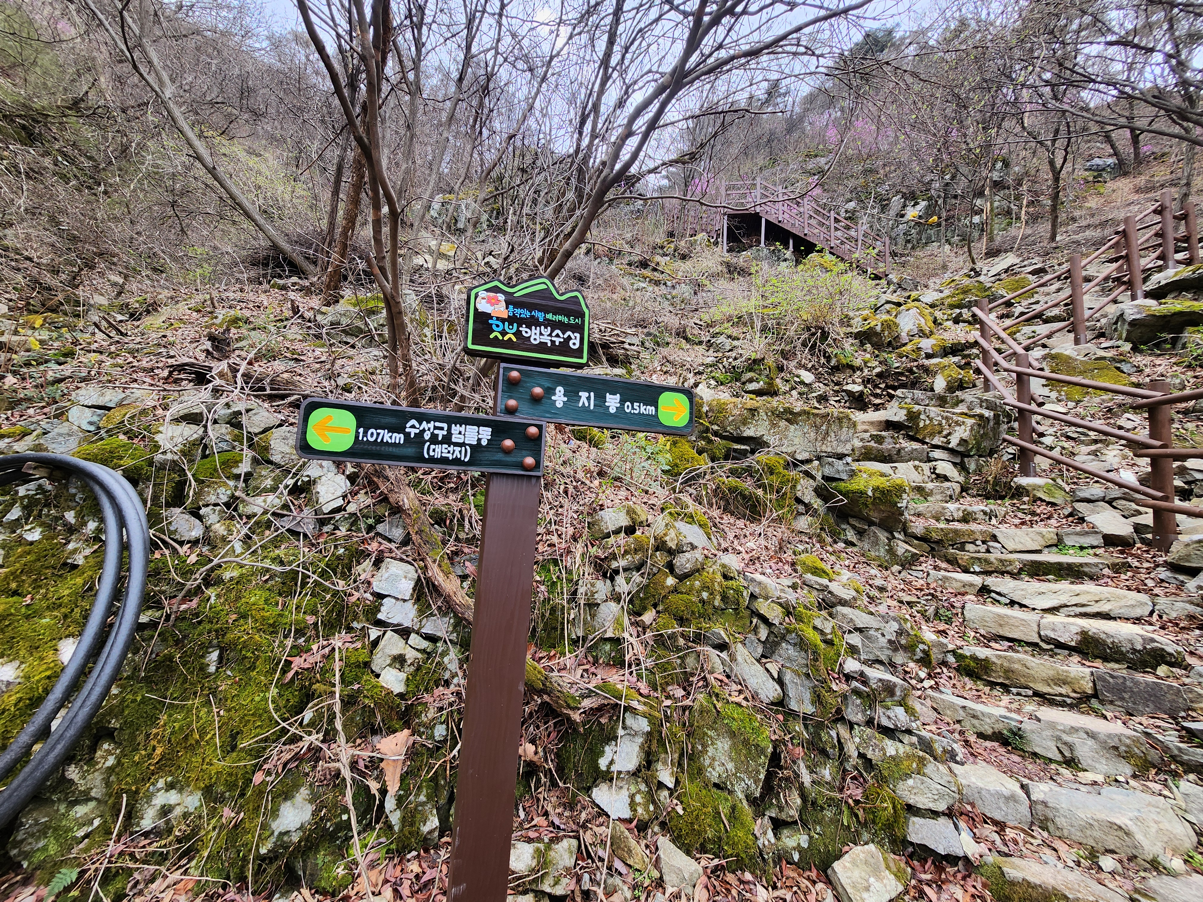 대구 수성구 용지봉 등산코스 벚꽃 피는 4월 등산 수성못 출발 법이산봉수대 애기봉 용지봉 용지역 하산 코스의 등산입니다.