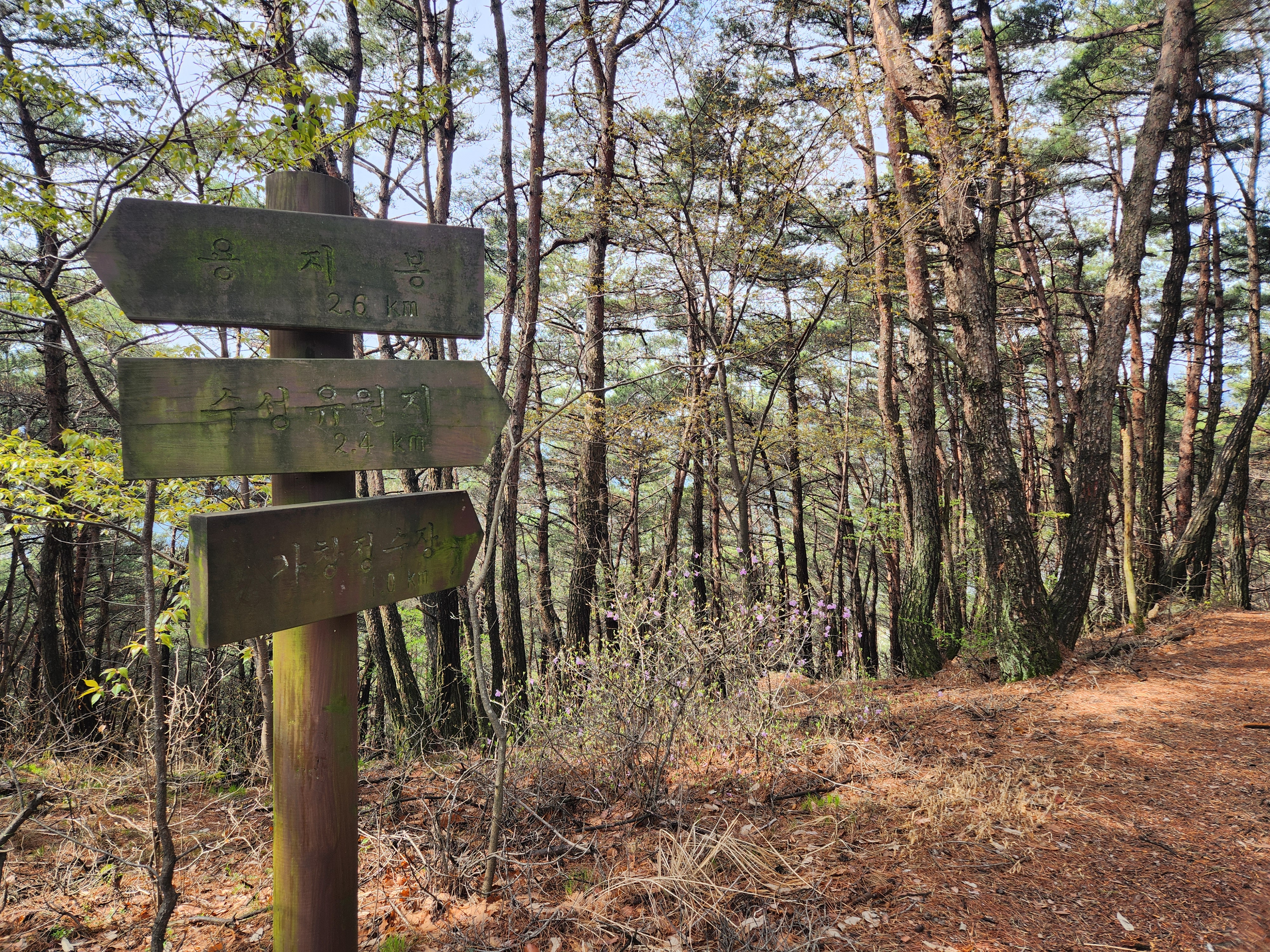 수성못에서 출발하여 용지봉으로 가는 코스는 거리는 조금 있지만 경사가 심한 오르막이 많이 없고 등산로 역시 험한 길이 없어 편안한 등산을 즐길 수 있는 것이 장점인 것 같습니다.