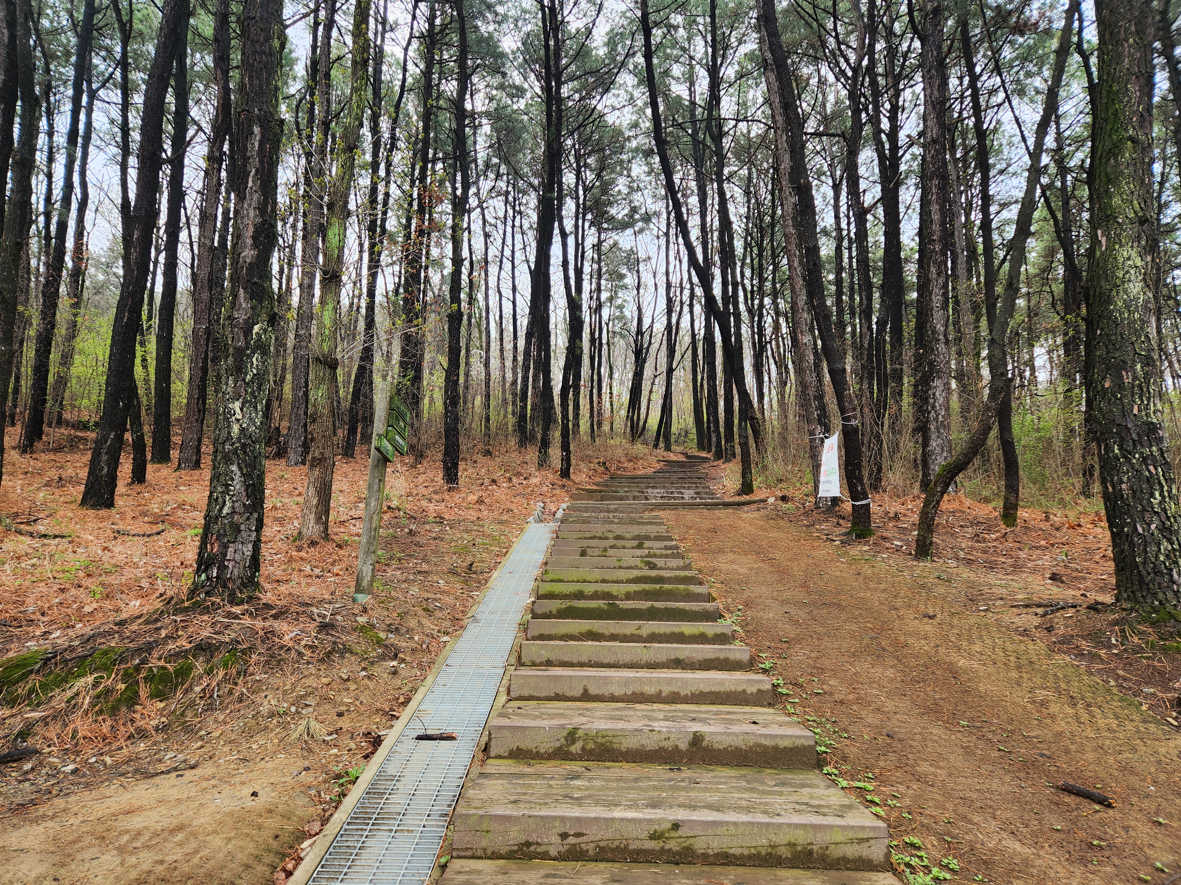 법이산 봉수대로 가는 길에 만난 오르막길입니다. 점점 산책길이 아닌 등산길로 오르막도 나오고 길이 조금 험해집니다.