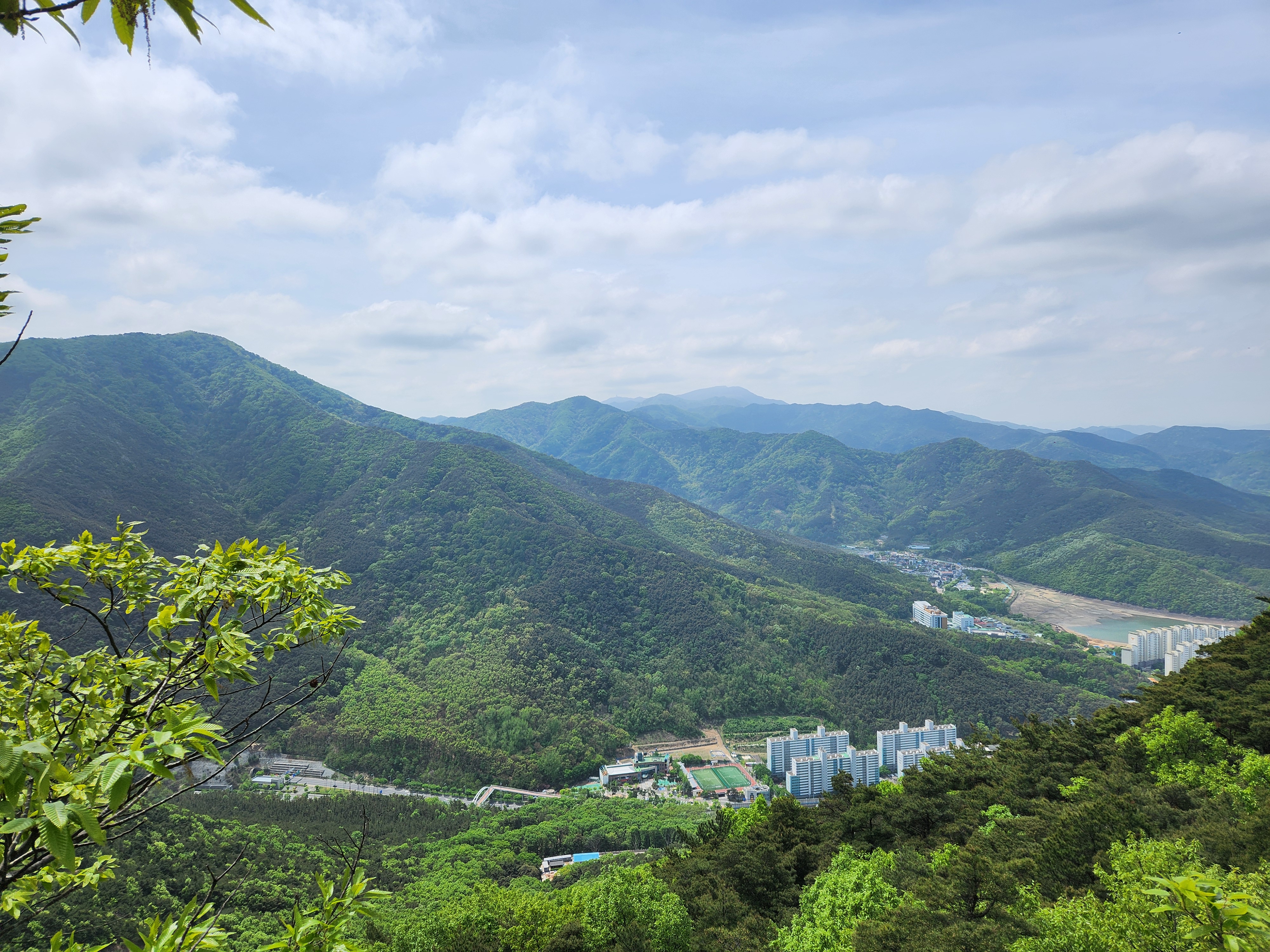 처음 보이는 전망입니다. 나무들 사이로 보이는 상인동의 모습으로 아파트 단지 뒤로 숲들이 자리하고 있는 모습이 아파트로 가득한 도시의 모습보다 더 좋아 보입니다.