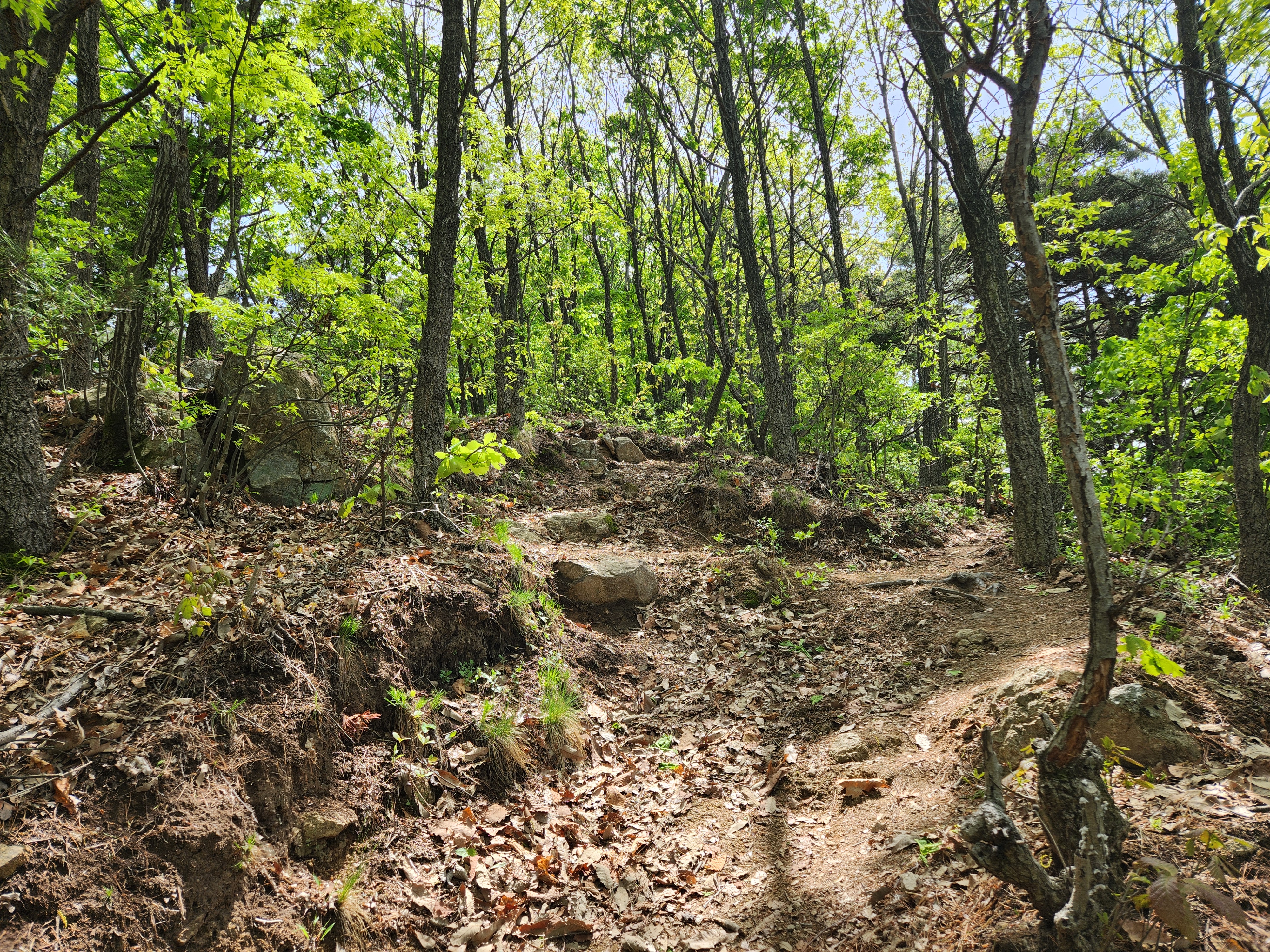 이곳까지 나무들이 울창한 등산로라 햇볕을 가려주지만 전망을 볼 수 없는 아쉬움이 있습니다.