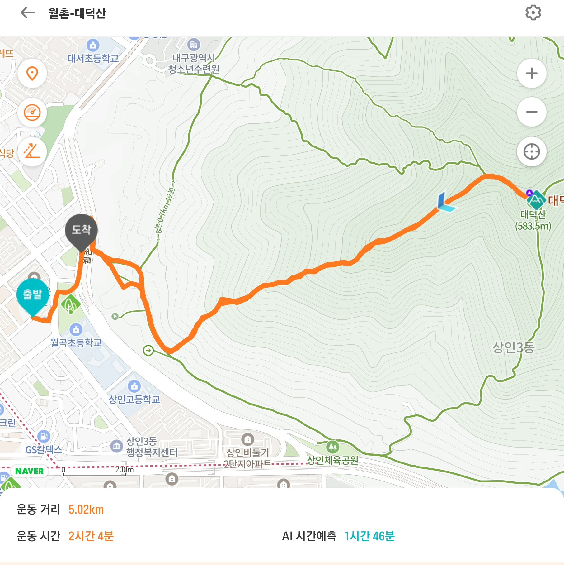 대구 상인동 대덕산 총 산행 거리: 약 5km