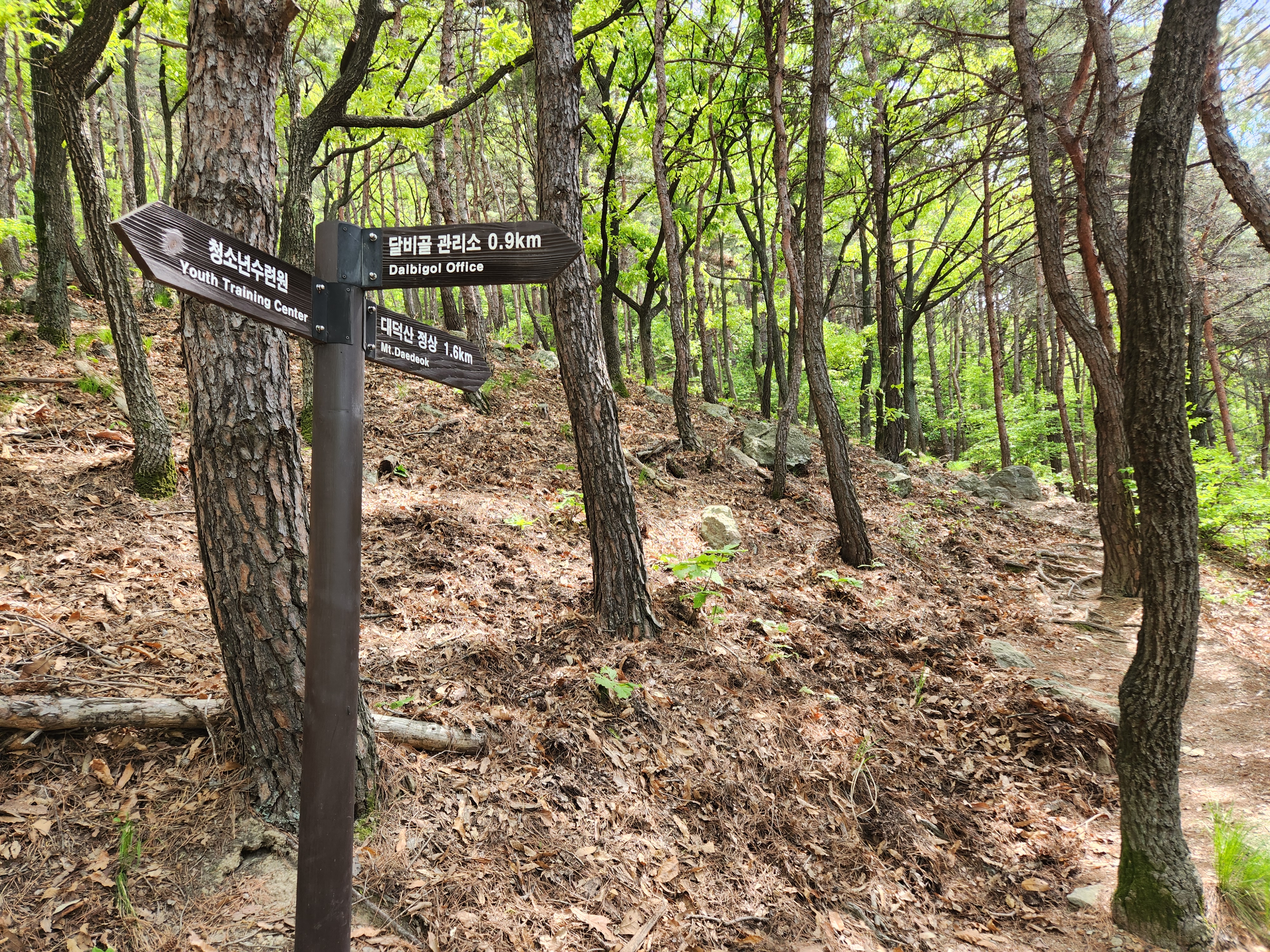 상인 대덕산은 청소년수련원 코스와 임휴사 코스를 많이 이용하는 것 같습니다. 달비골 관리소 방향으로 가는 둘레길을 따라 계속 걷다 보면 대덕산으로 올라가는 등산로가 나옵니다.