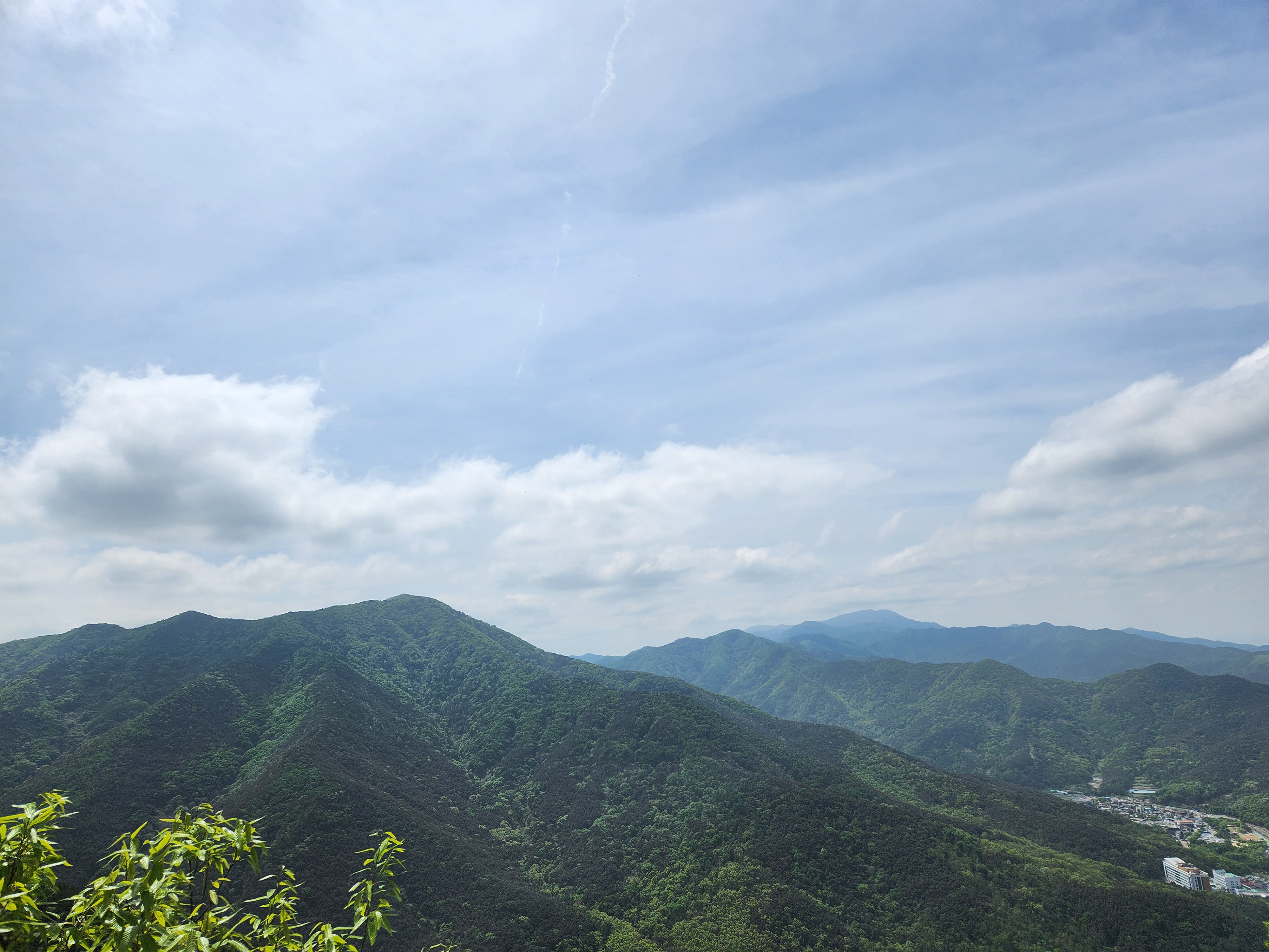 이 지점이 상인동 대덕산 중에서 가장 뷰가 좋은 장소입니다. 대덕산의 정상 모습과 대구 달서구 전망입니다.