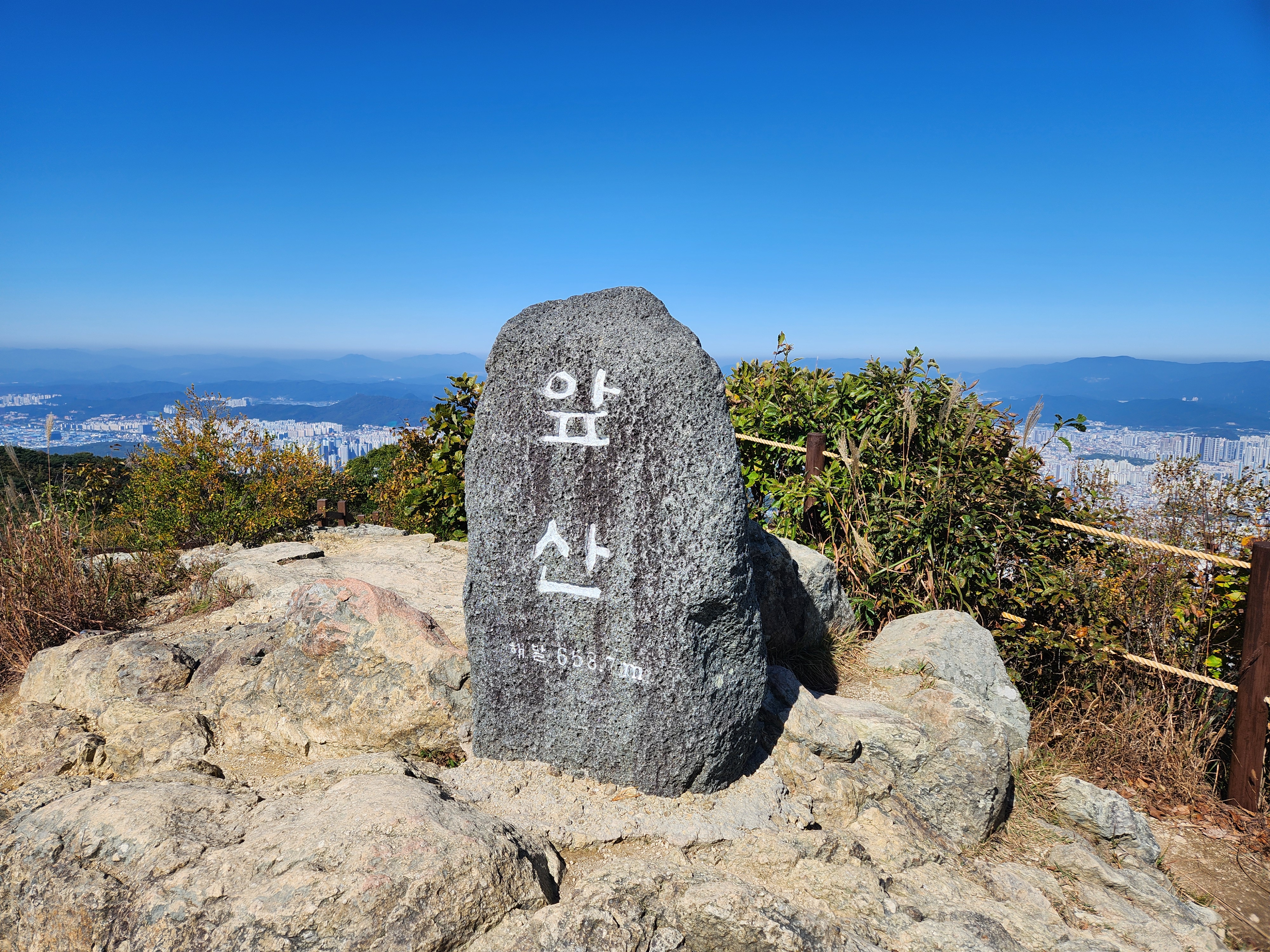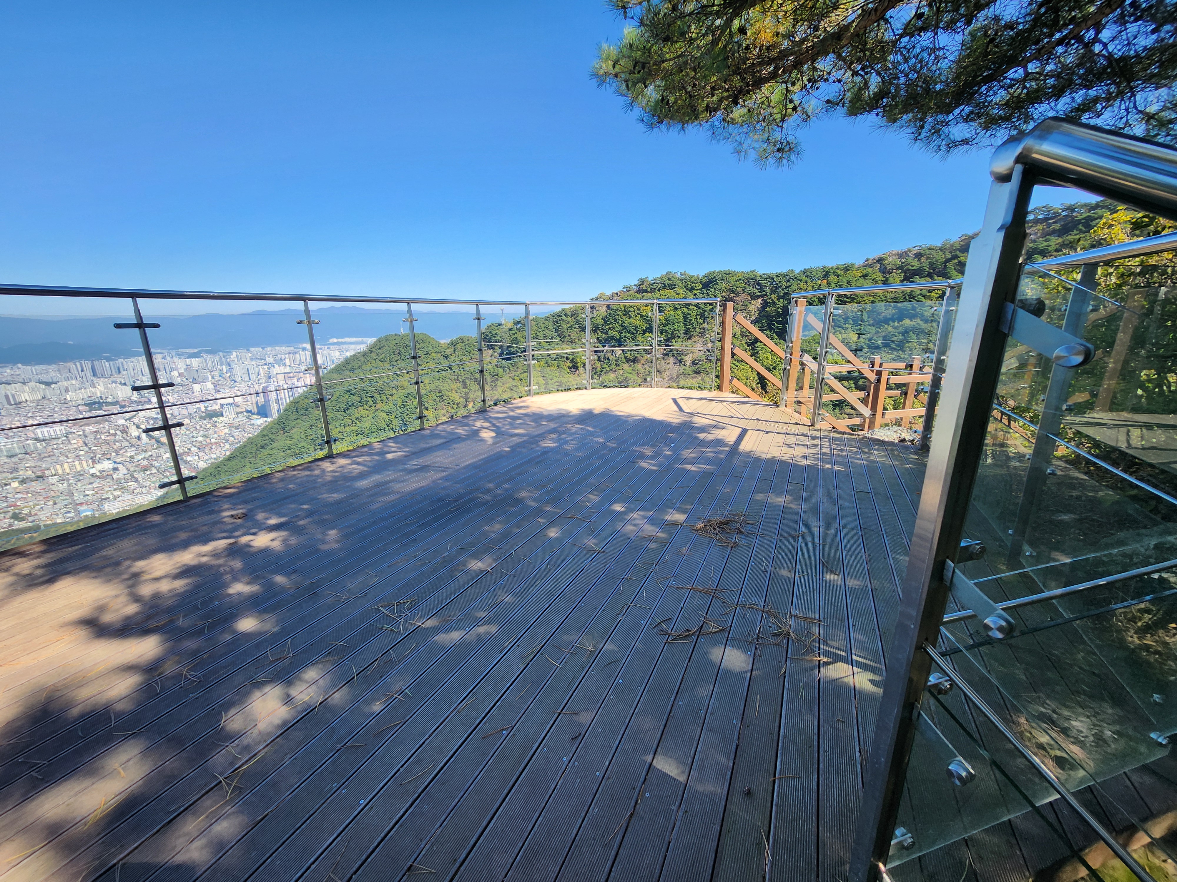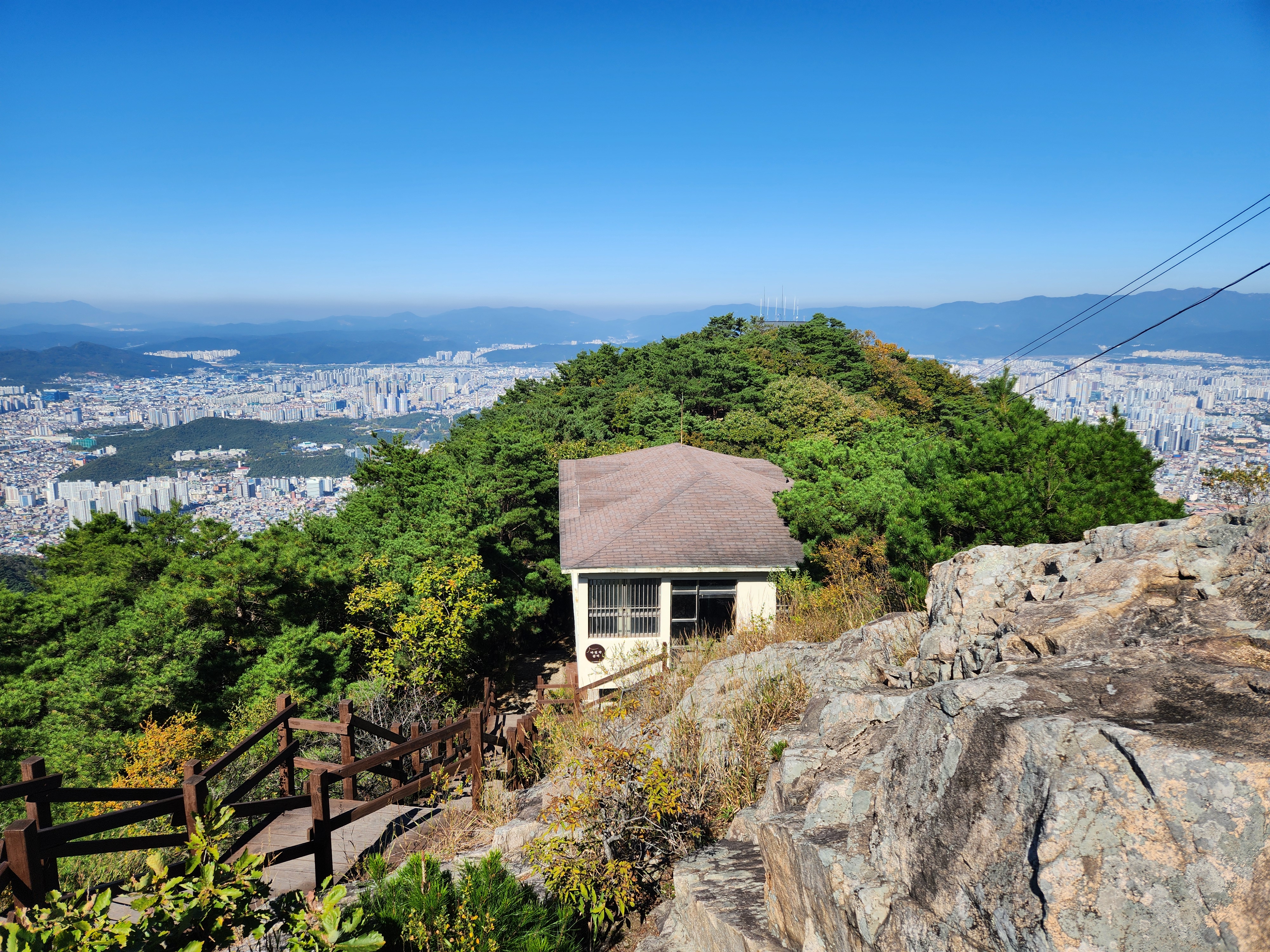 앞산 왕굴 전망대입니다. 이날 너무 맑은 하늘이었습니다. 대구 시내와 팔공산 사진과 멀리 구미 금오산을 모습도 선명하게 나와 사진을 담았습니다.
