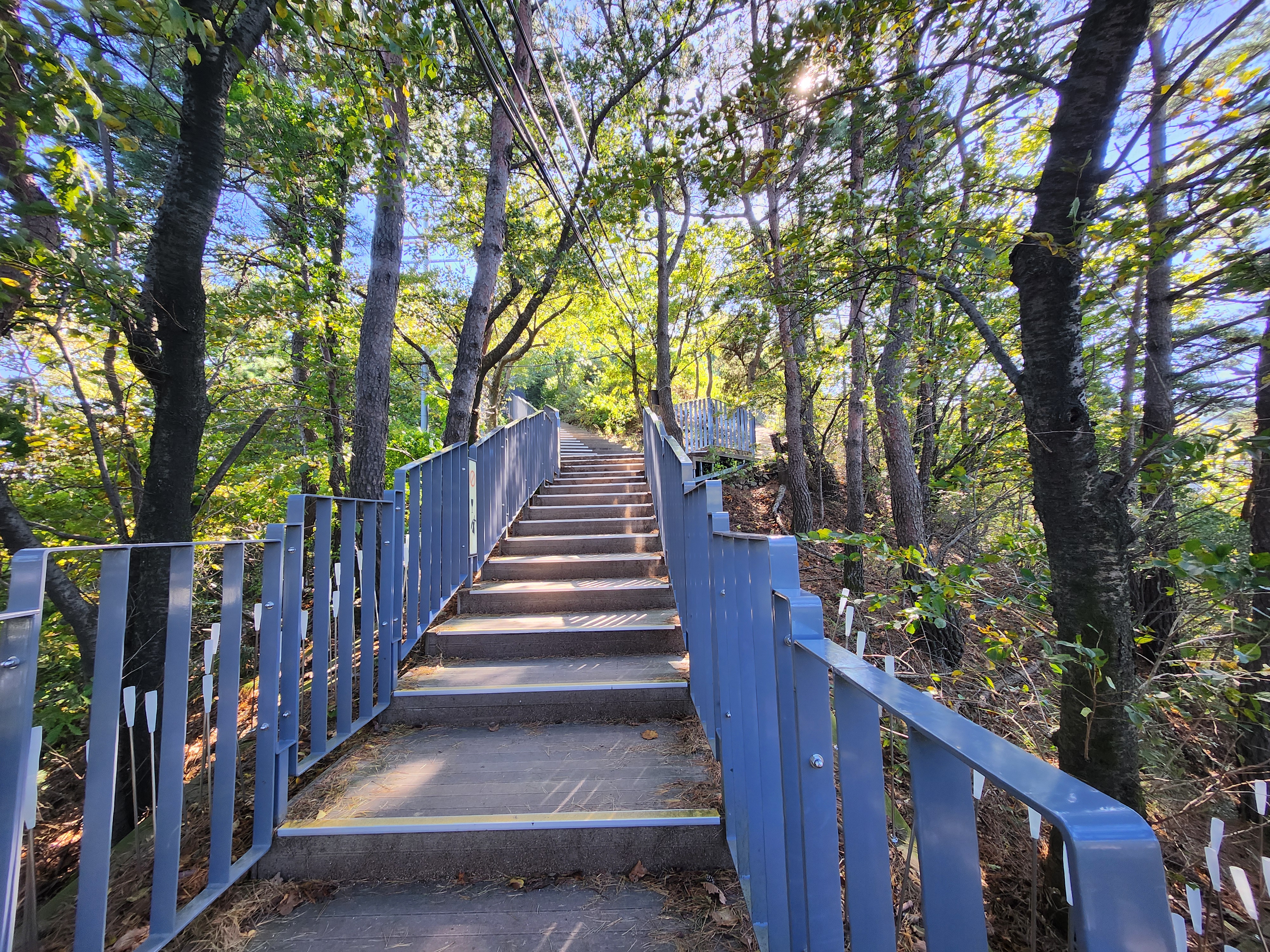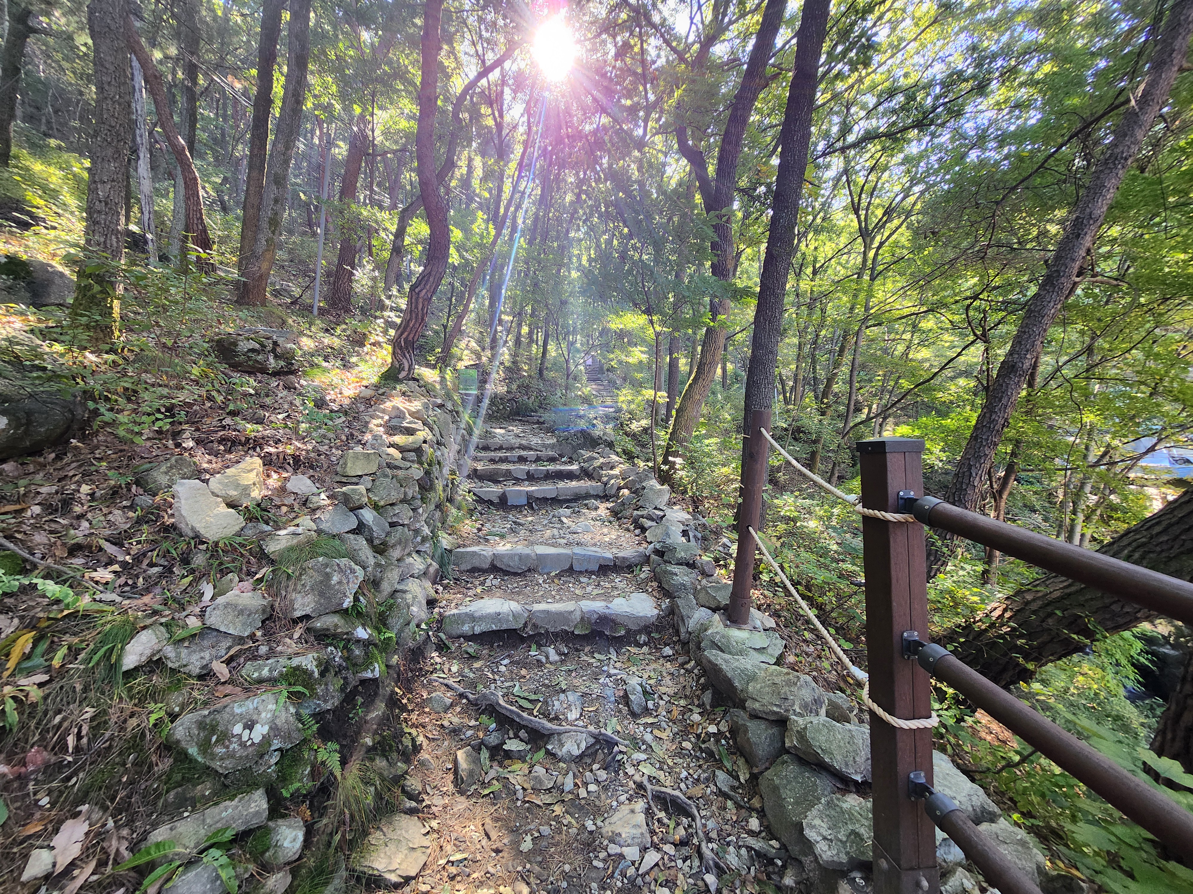앞산 전망대를 뒤로 하고 계단으로 된 길을 따가 내려가다 보면 안일사로 내려오게 됩니다. 안일사부터는 인도길이지만 경사가 심해 천천히 내려가는 것이 좋을 것 같습니다.