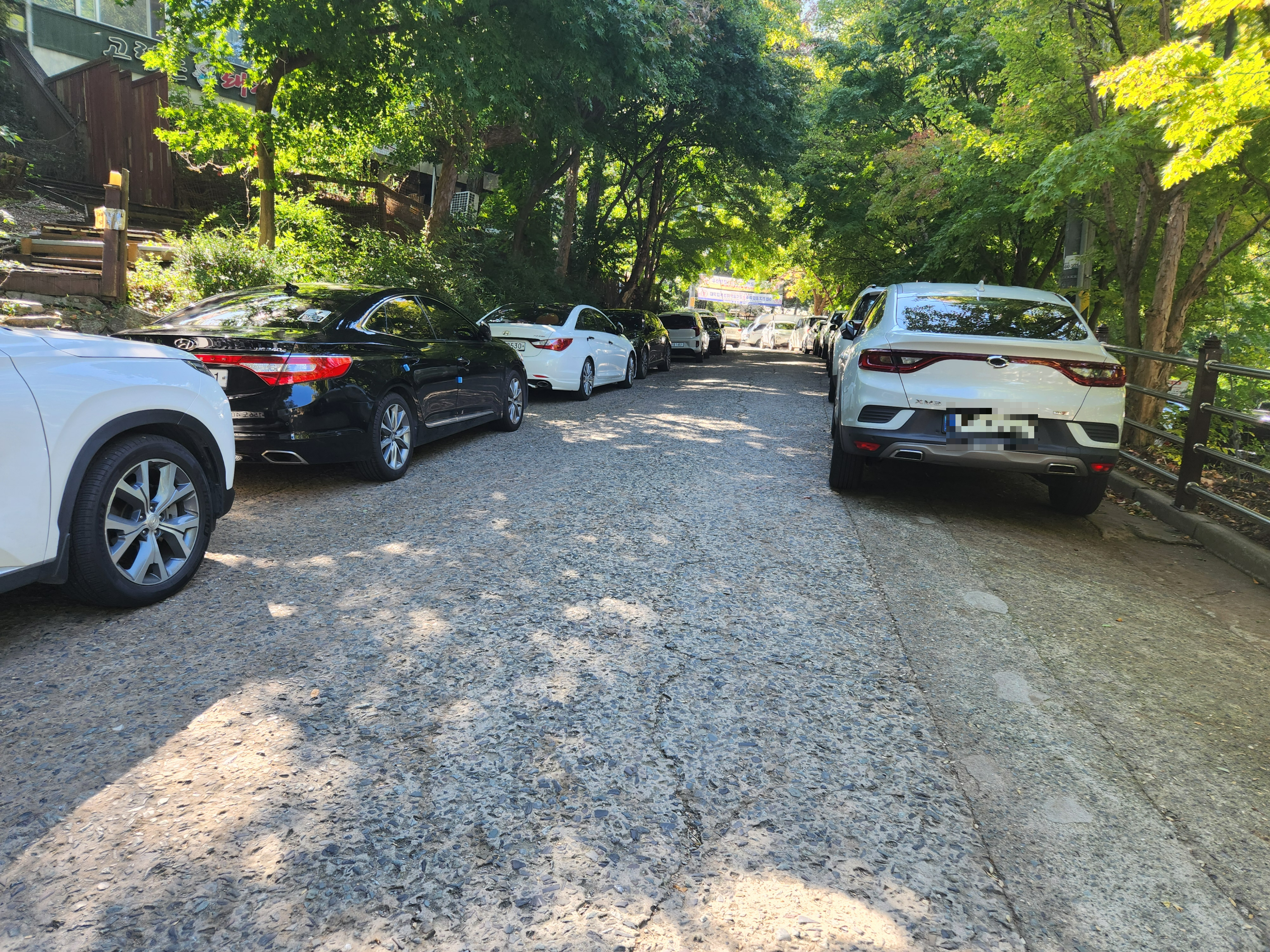 공영 주차장은 무료이지만 주차 공간이 많지 않아 주변 도로에 주차된 차량도 많이 있었습니다.
