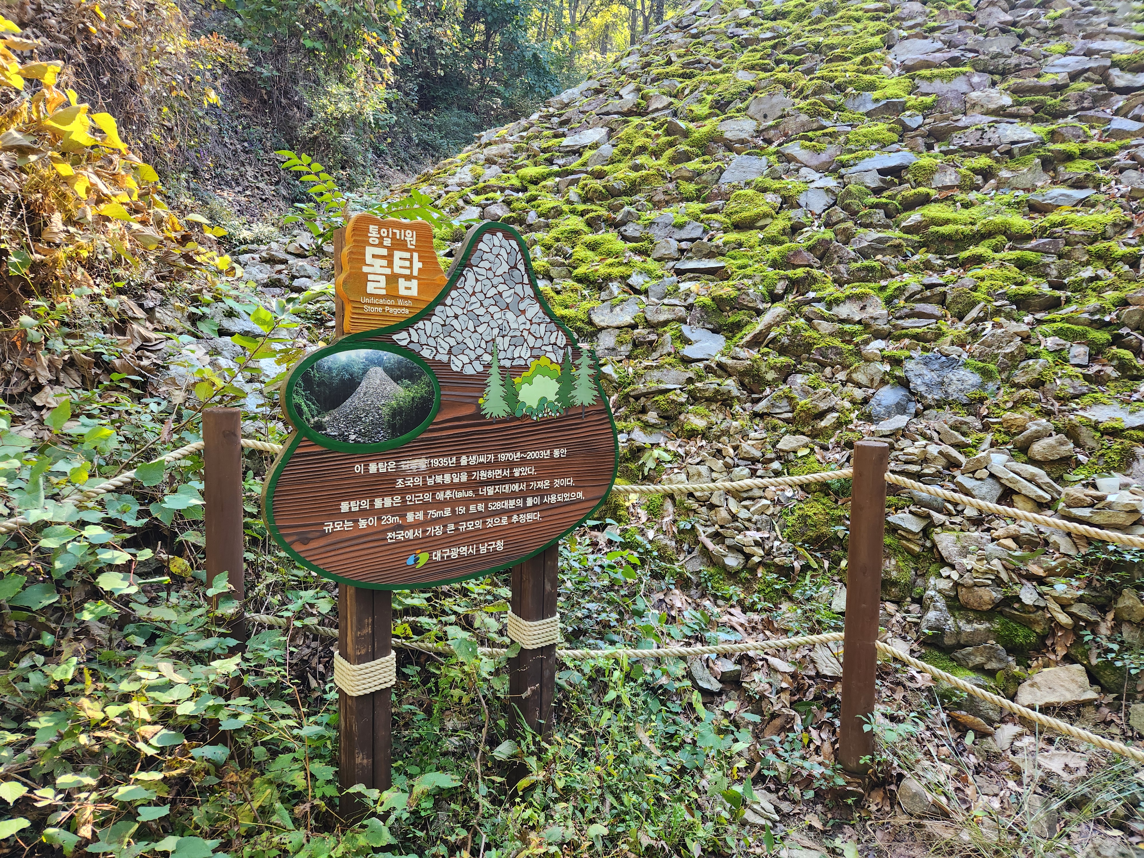갈림길에서 조금 올라가면 통일기원 돌탑이 있습니다. 사진으로 보기에는 많이 크게 보이지는 않지만 실제로는 어마어마한 크기를 자랑합니다. 개인 만든 것으로 엄청난 량의 돌이 사용하여 몇십 년 동안 만들었다고 표시판에 적혀있습니다.