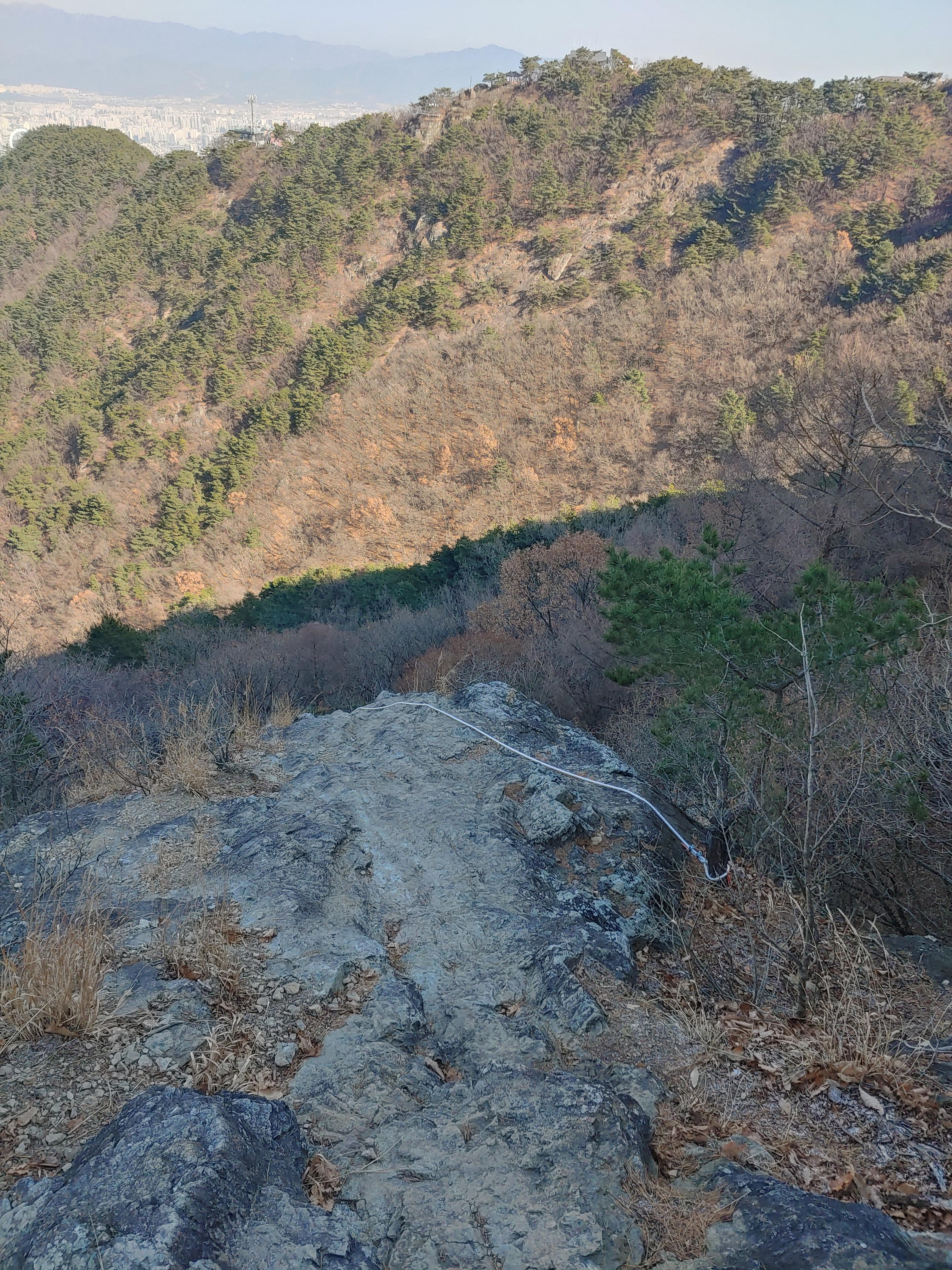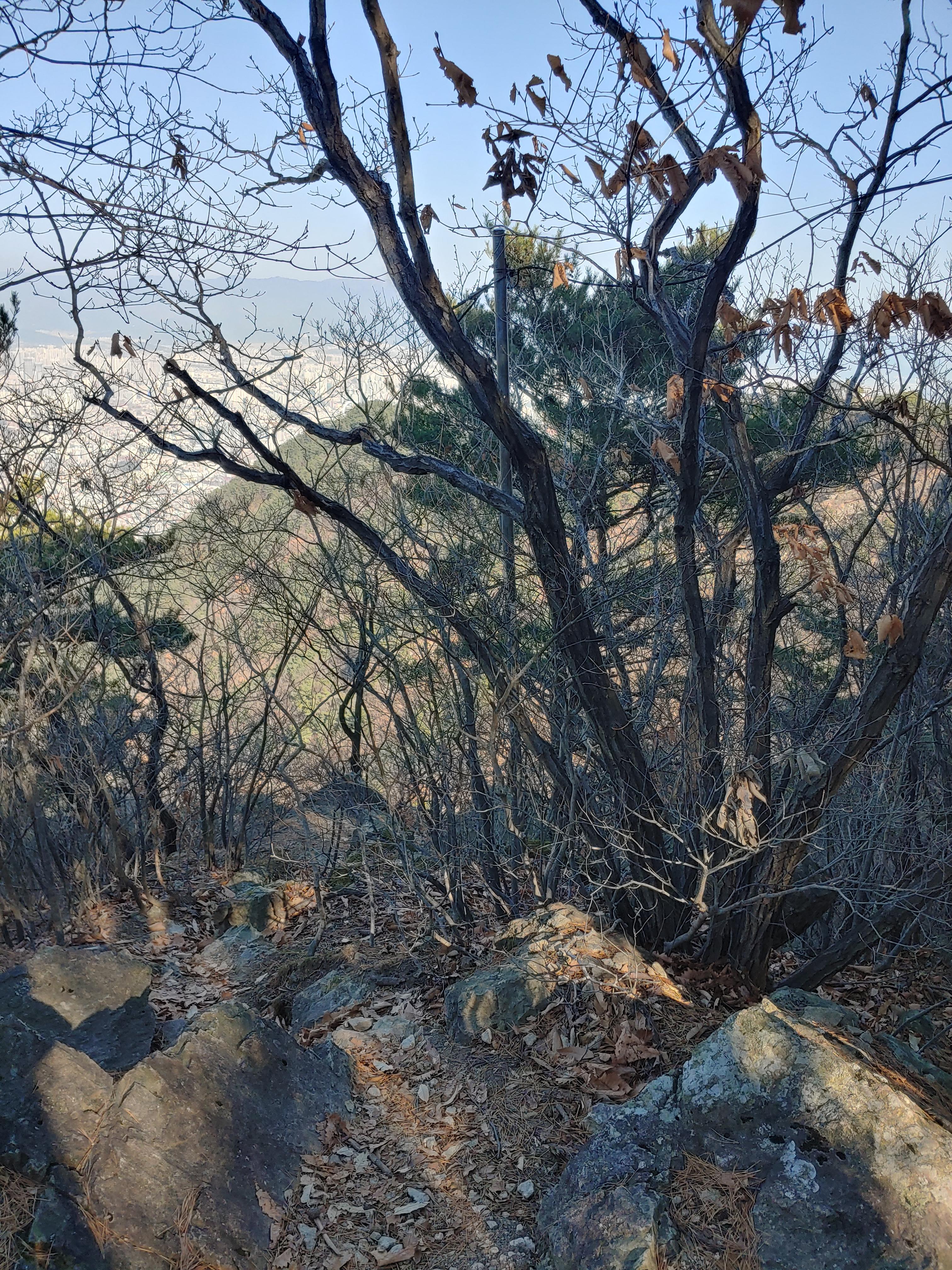 왕굴을 지나면 계속되는 오르막입니다. 짧은 구간이지만 오르막으로만 이루어진 등산 구간입니다. 지금은 통제된 구간이지만 출입 통제가 되지 않았을 때에는 이 구간이 앞산 정상으로 가는 가장 짧은 구간이었습니다. 2022년 등산 때 찍은 사진이 있어 사진을 보며 기억을 더듬어보면 위험한 바위 구간을 지나면 짧은 구간의 오르막을 오르면 정상에 도착했던 것 같습니다.