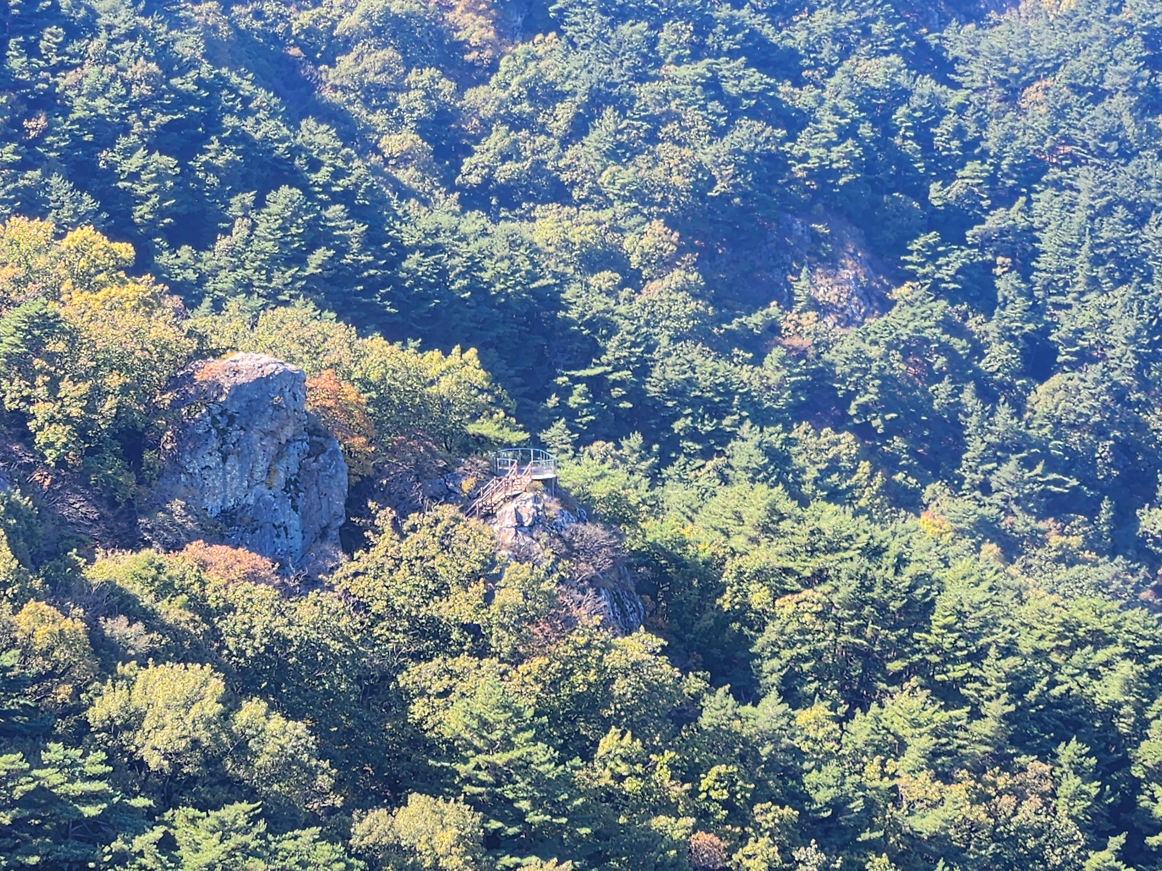 하산은 케이블카 승강장으로 해서 앞산 전망대방향으로 내려갑니다. 하산 길에 보이는 왕굴 전망대의 모습입니다.