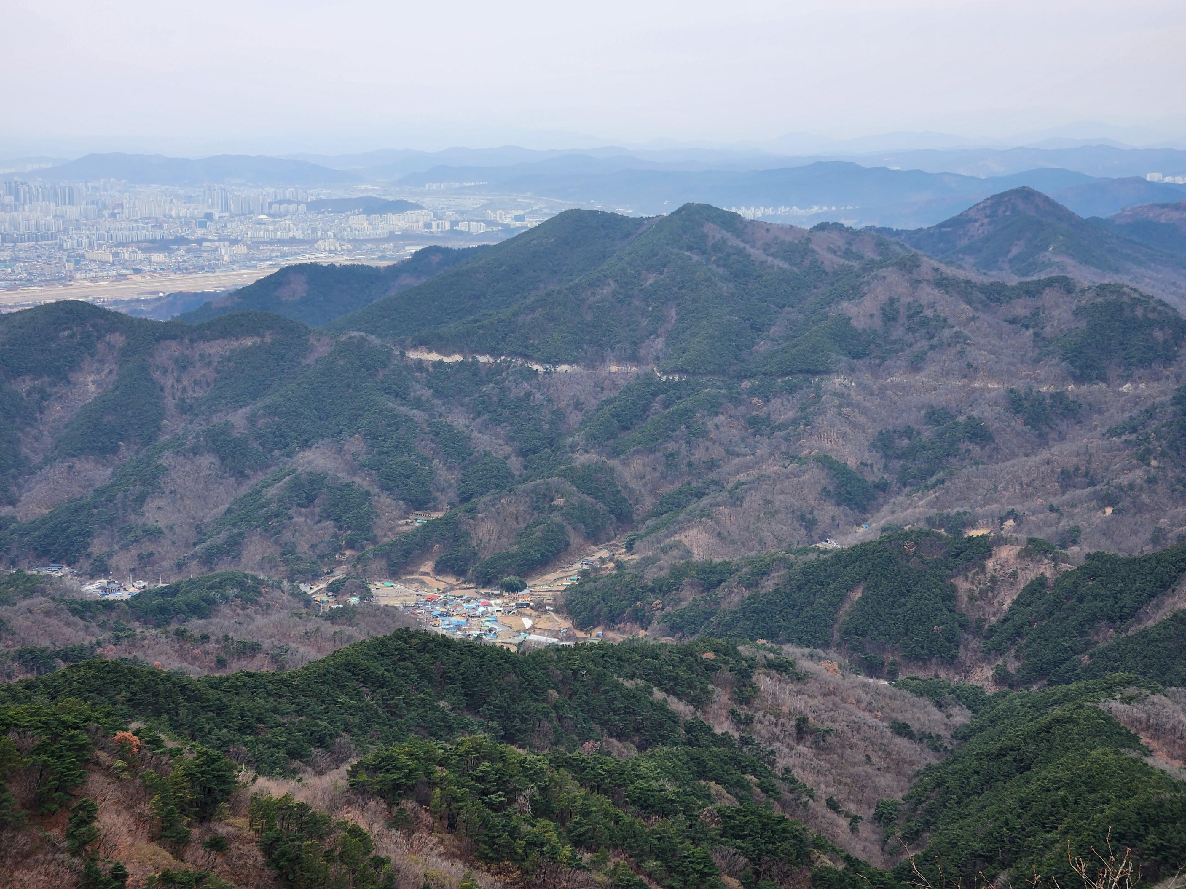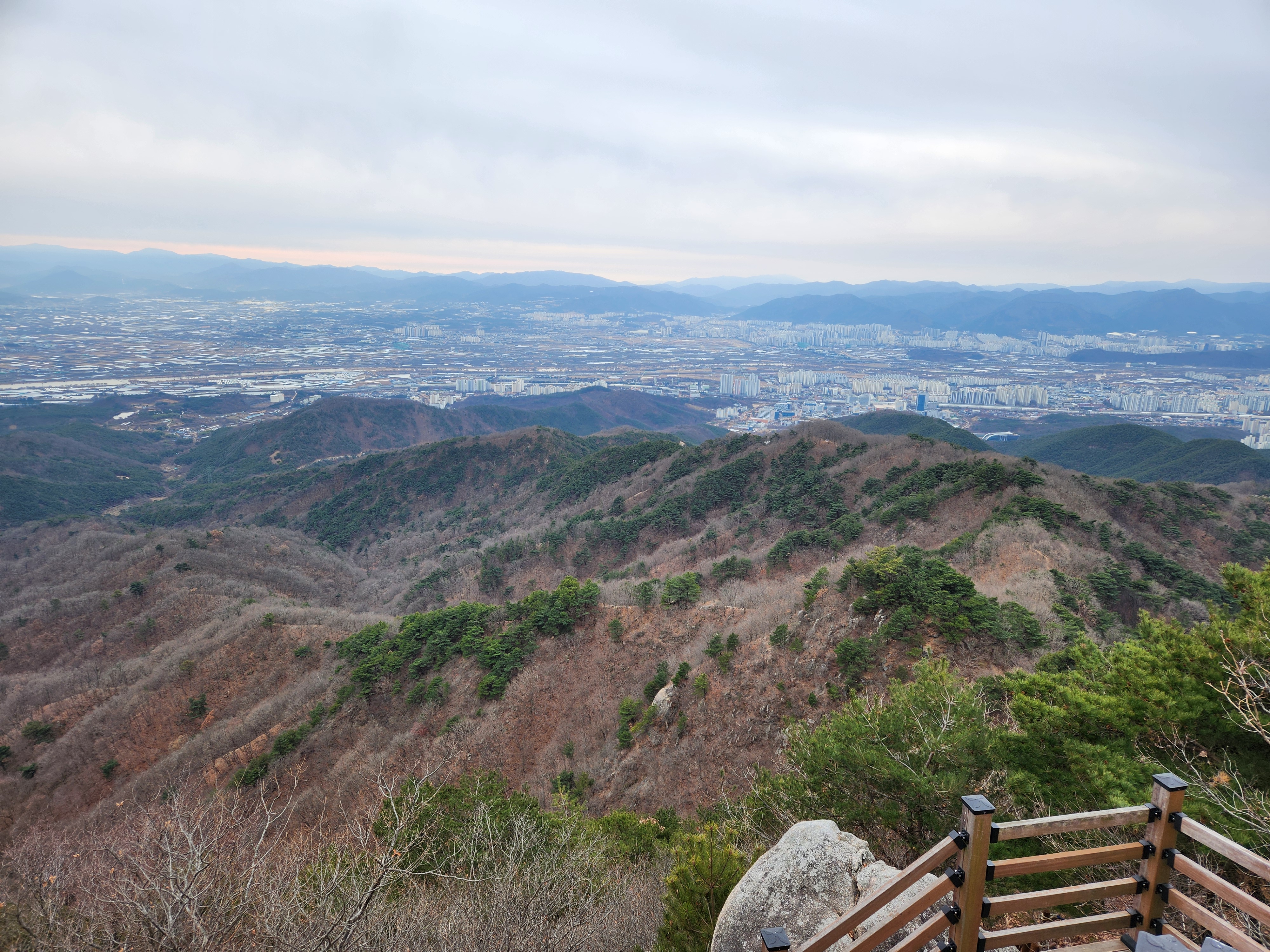 흐린 날이었지만 대기가 깨끗한 날이라 전망이 잘 보였습니다. 팔공산 방향과 초례봉에서 바라보는 대구 시가지의 풍경입니다.