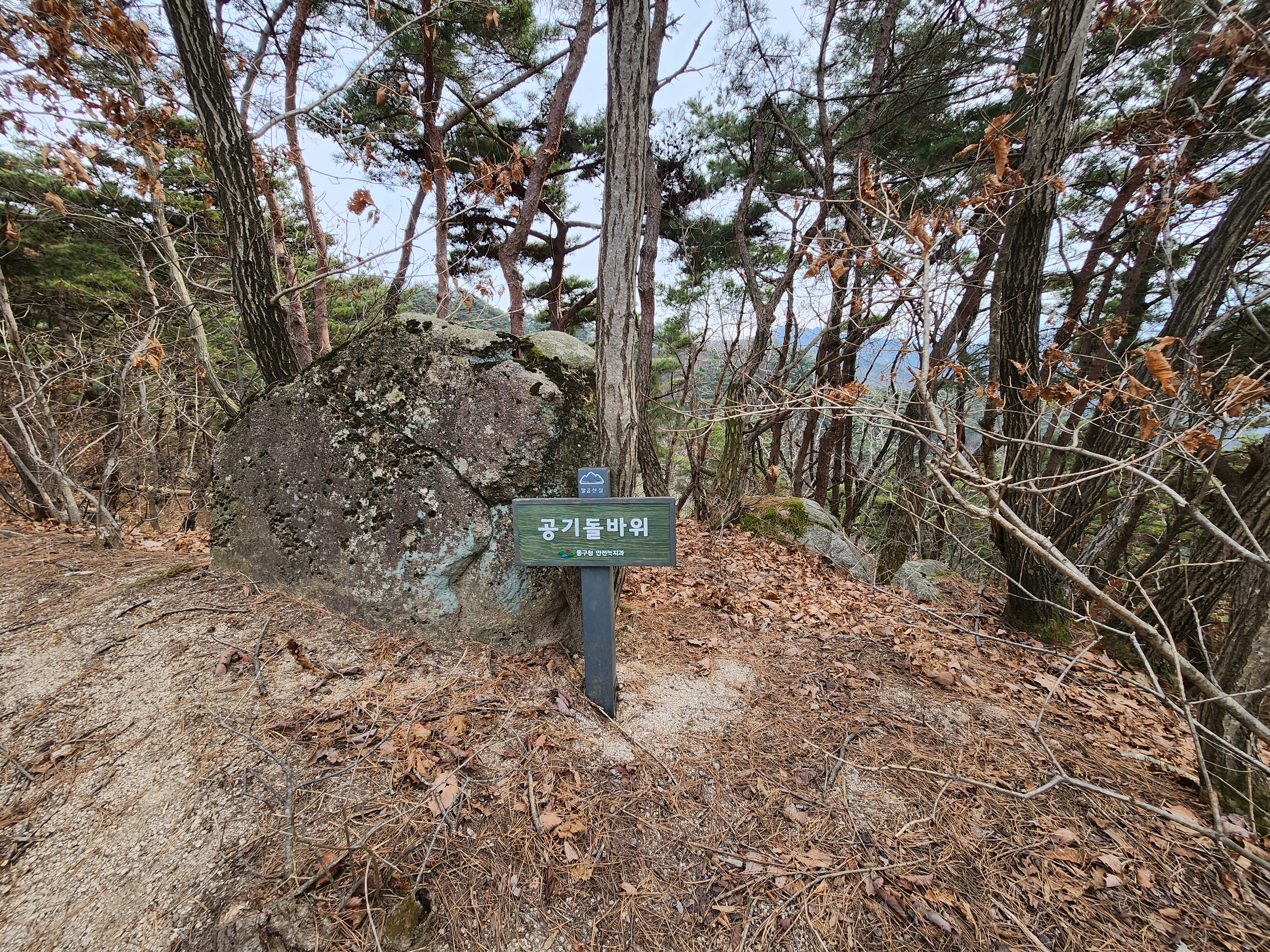 정상 비석은 큰 바위를 지나면 나타납니다. 정상에서 점심과 휴식을 하고 다시 매여동으로 향합니다. 매여동으로 향하는 길에 있는 공깃돌바위입니다.
