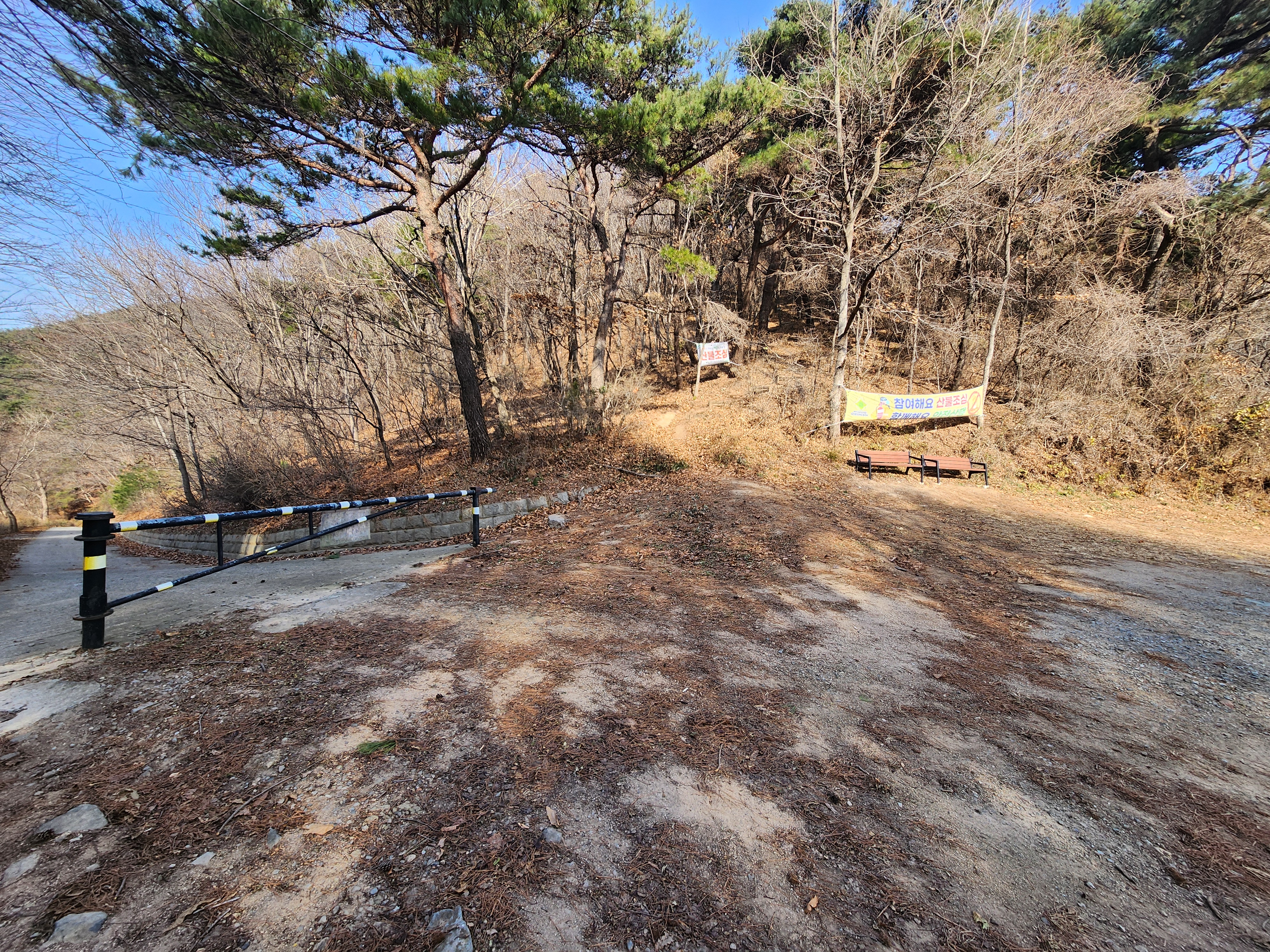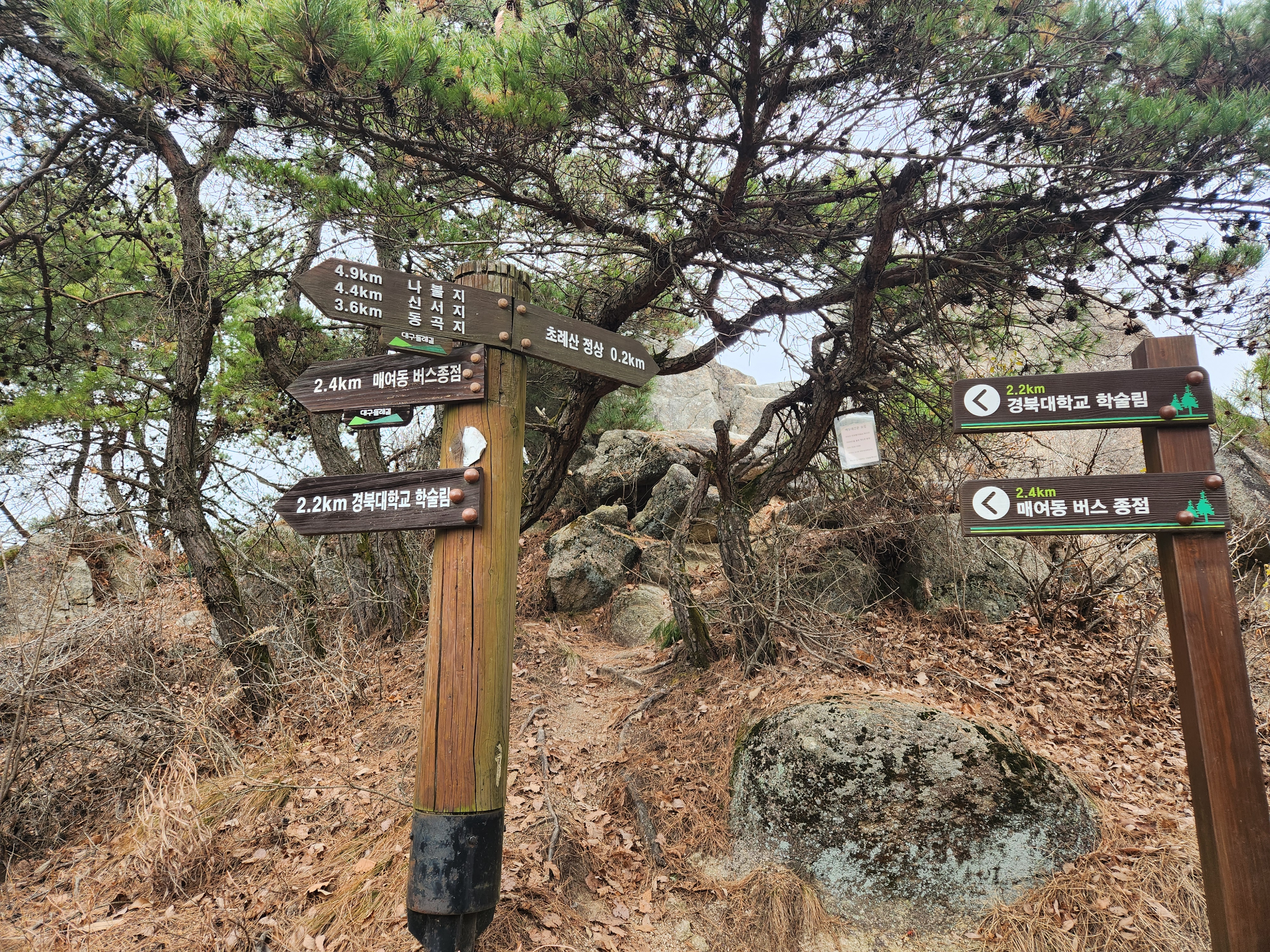 도로를 따라 마을을 지나 올라가면 갈림길이 나오는데 경북대학교 학술림이 보일 때까지 계속 올라가야 합니다. 이날 갈림길로 가는 바람에 길 잘 못 들었는데 다행히 동네 어르신을 만나 초례봉 들머리에 도착할 수 있었습니다.