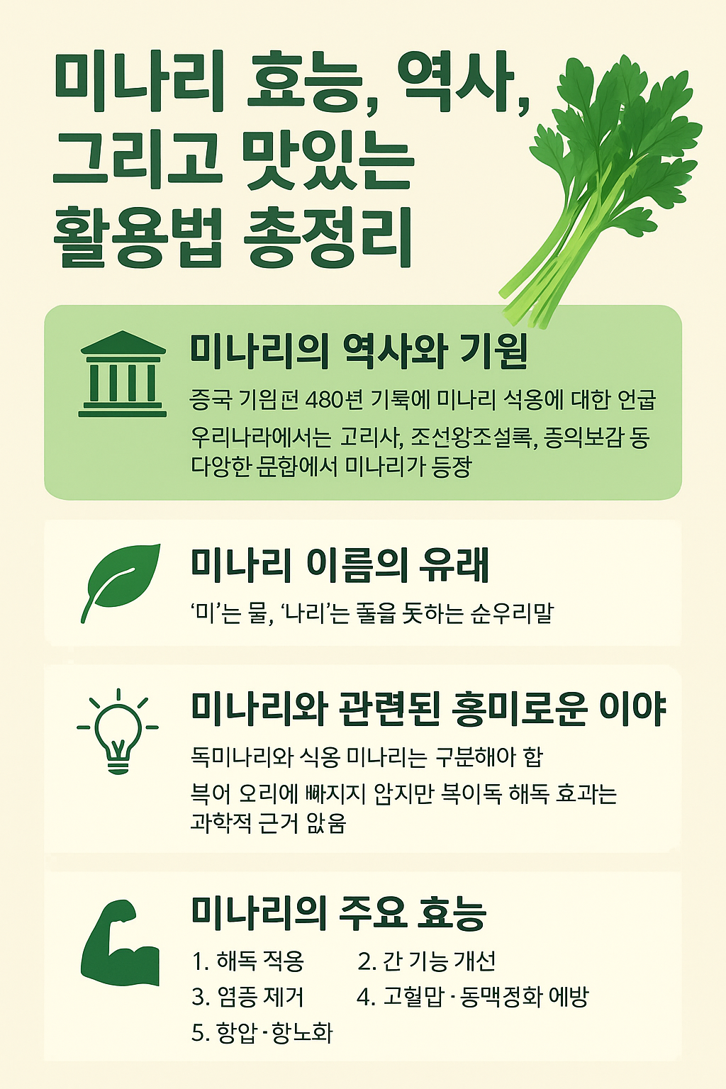 🌱 미나리 효능, 역사, 그리고 맛있는 활용법 총정리
