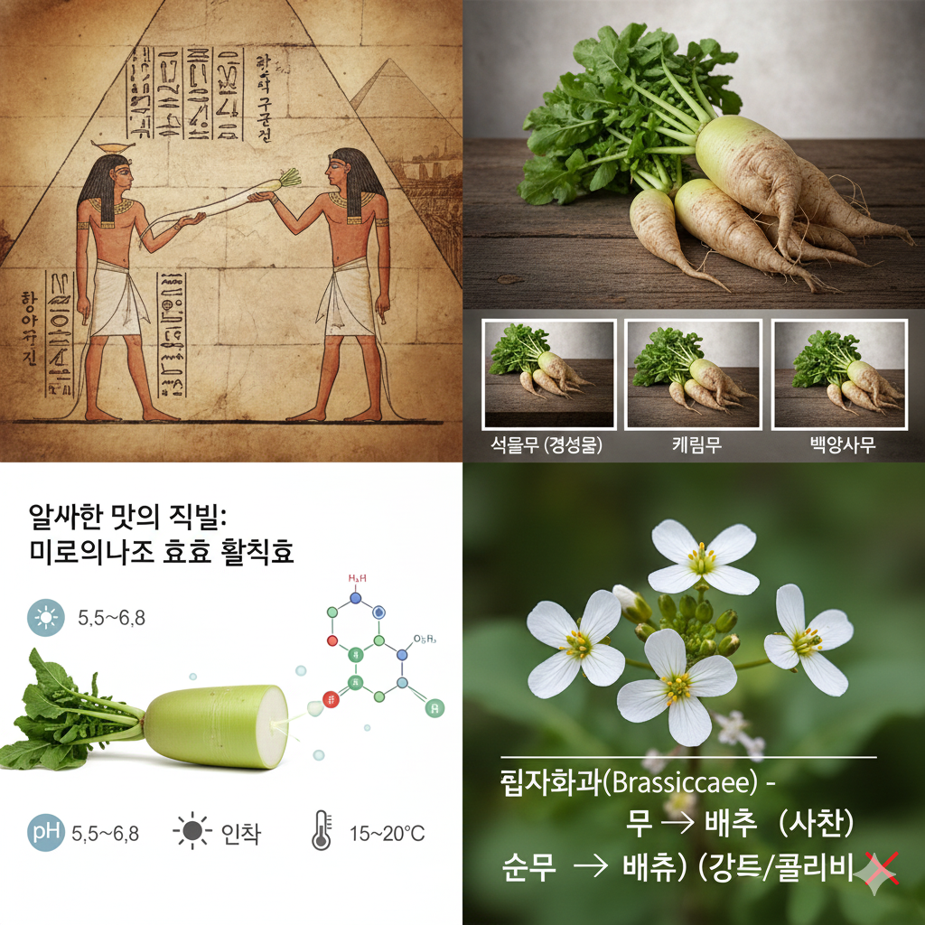 이 글에서는 고대 이집트의 기록에서 시작해, 한반도에 전래된 과정과 한국 재래무의 비밀, 그리고 과학적으로 밝혀진 무의 특징까지 깊이 있게 살펴봅니다.