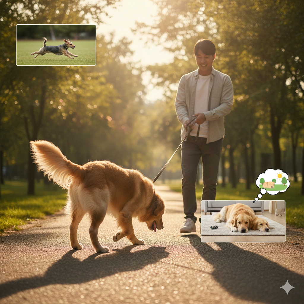 산책 바로 나가기보다 흥분도를 한 번 꺼주면 훨씬 잘 걸어요.