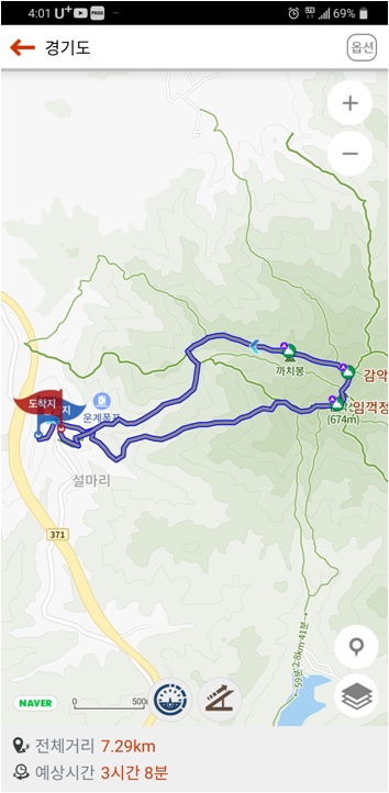 등산 코스 소개: 감악산 주차장--> 감악산 출렁다리--> 청산 계곡 등산로-->악귀봉-->장군봉-->임꺼정봉-->