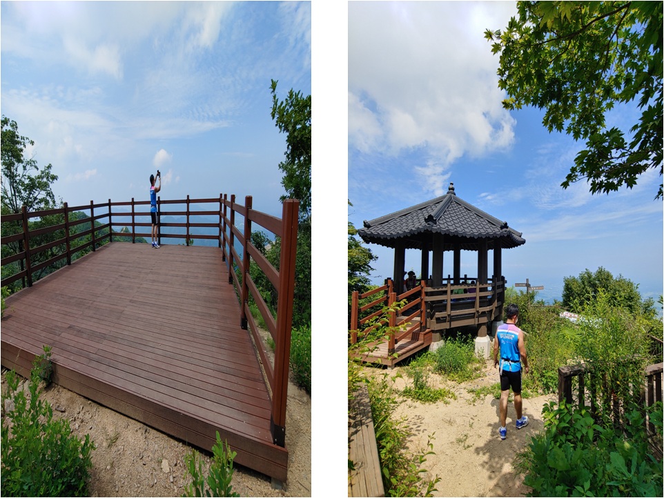 이곳에서 찍어야 위의 사진이 나올 수 있습니다 다른 정상에서 합류한 동료가 사진을 찍어 주고 있습니다. 이곳에도 좋은 자리에 정자가 있습니다. 경치를 보며 휴식을 가질 수 있을 것 같습니다.