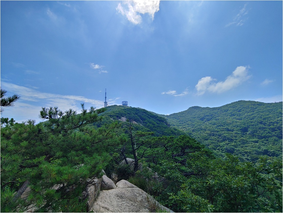 장군봉에서 찍은 사진입니다. 더운 날이었지만 먼지가 없어 깨끗한 하늘이라 탁 터인 경치가 잘 보였습니다.