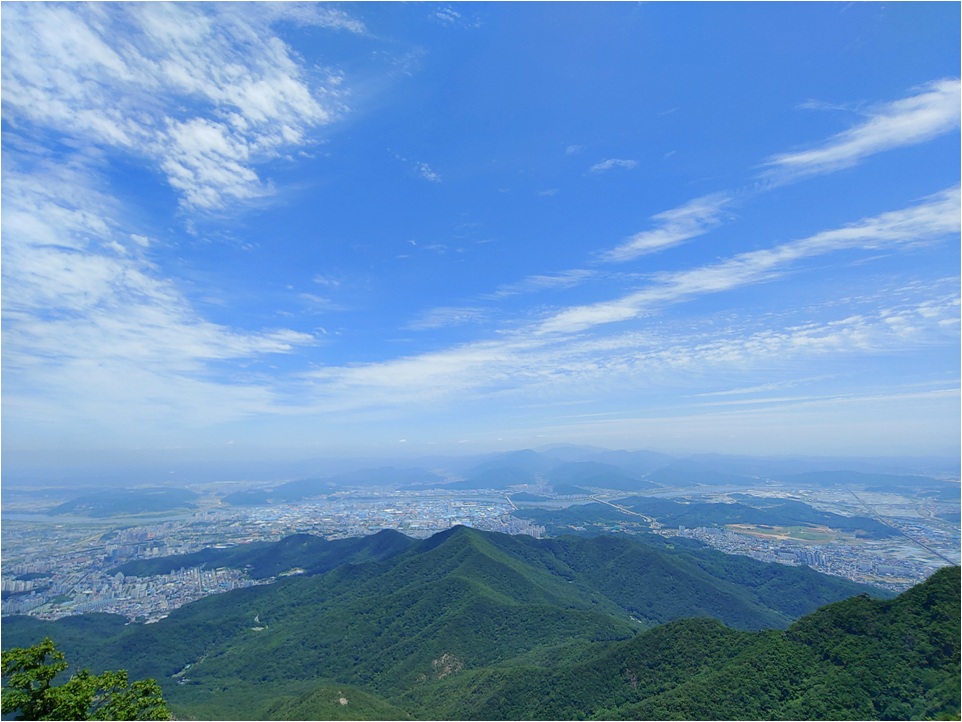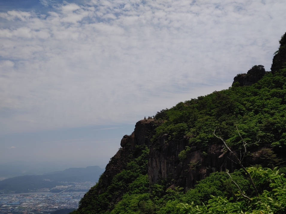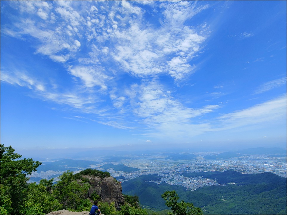 할딱 고개 올라오면 전망대가 있습니다. 개인적인 차이는 있지만 금오산 주 등산 중 힘든 구간을 3번 만나는데 첫 번째가 할딱 고개가 구간입니다. 할딱 고개 전망대에서 물과 숨을 돌리며 휴식을 합니다. 이곳 전망대 바라보는 풍경입니다.
