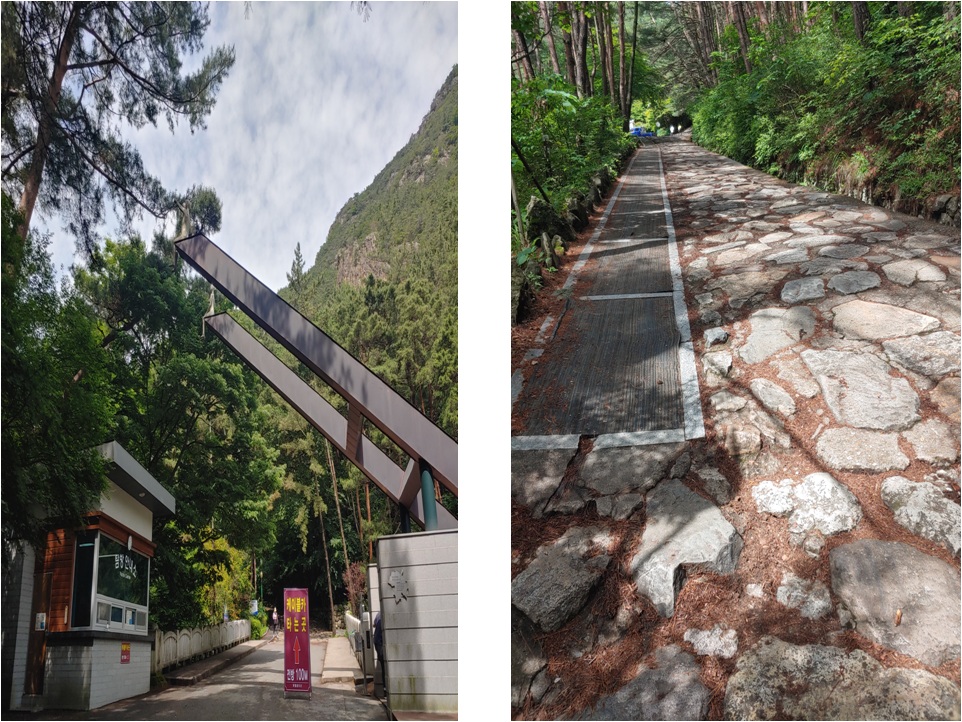 금오산은 폭포까지 많은 분들이 다녀가고 있습니다 관광을 목적으로 하는 분들도 많았는데 대혜폭포까지는 30분 정도 걸리는 시간이며 케이블카 운행도 하고 길도 정비가 잘되어 있습니다. 완만한 등산로이며 흙길보다는 데크계단과 포장된 길이 많아 구두를 신고 올라올 수도 있는 길입니다.