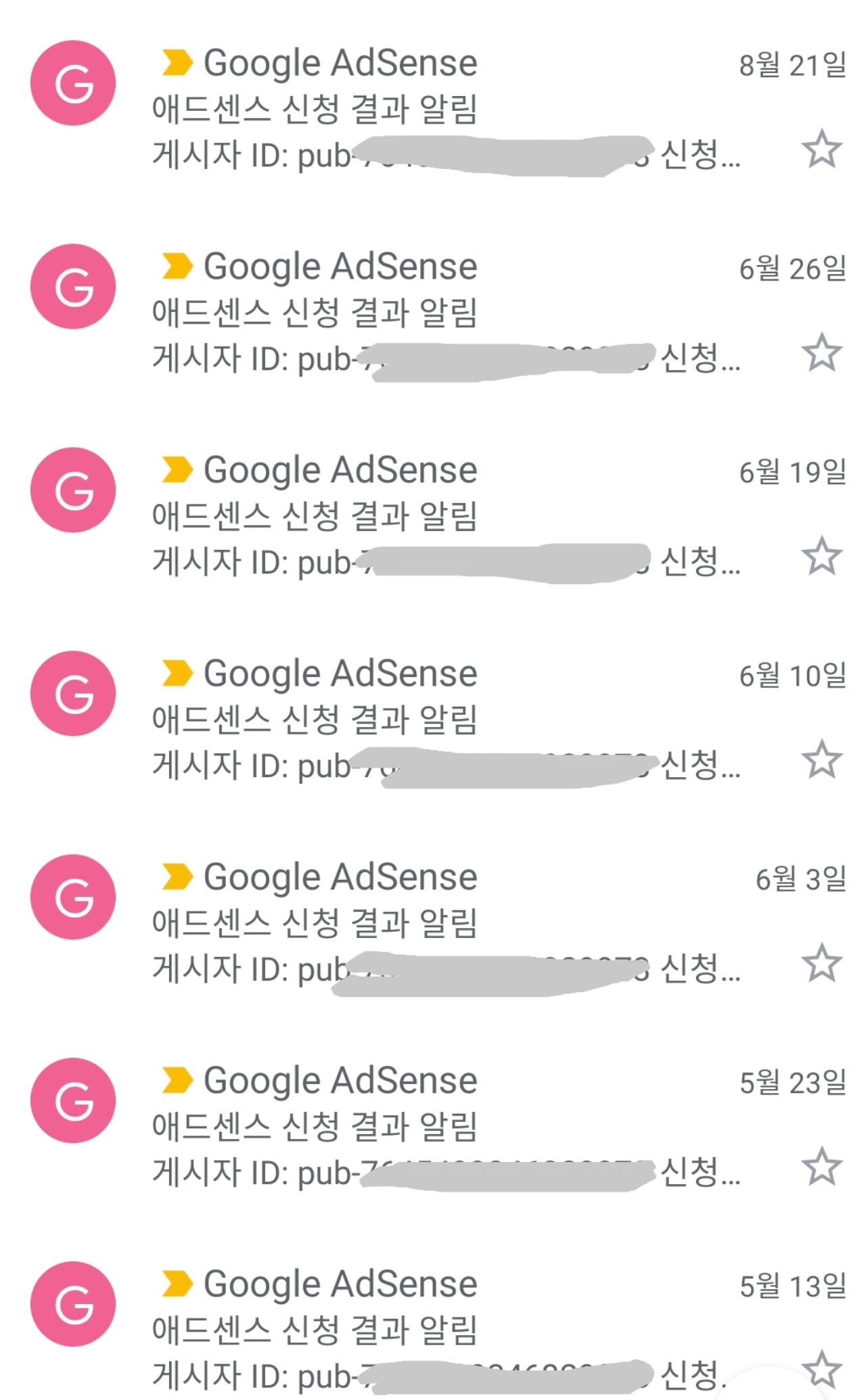 4월에는 21개의 정도의 글을 적고 인터넷에 알려진 공식 글 천자 이상 애드센스 신청 후 1일 1 포스이팅 등 여러 가지 방법을 알아보고 실천도 하였지만 역시나 승인 거절의 연속이었습니다.