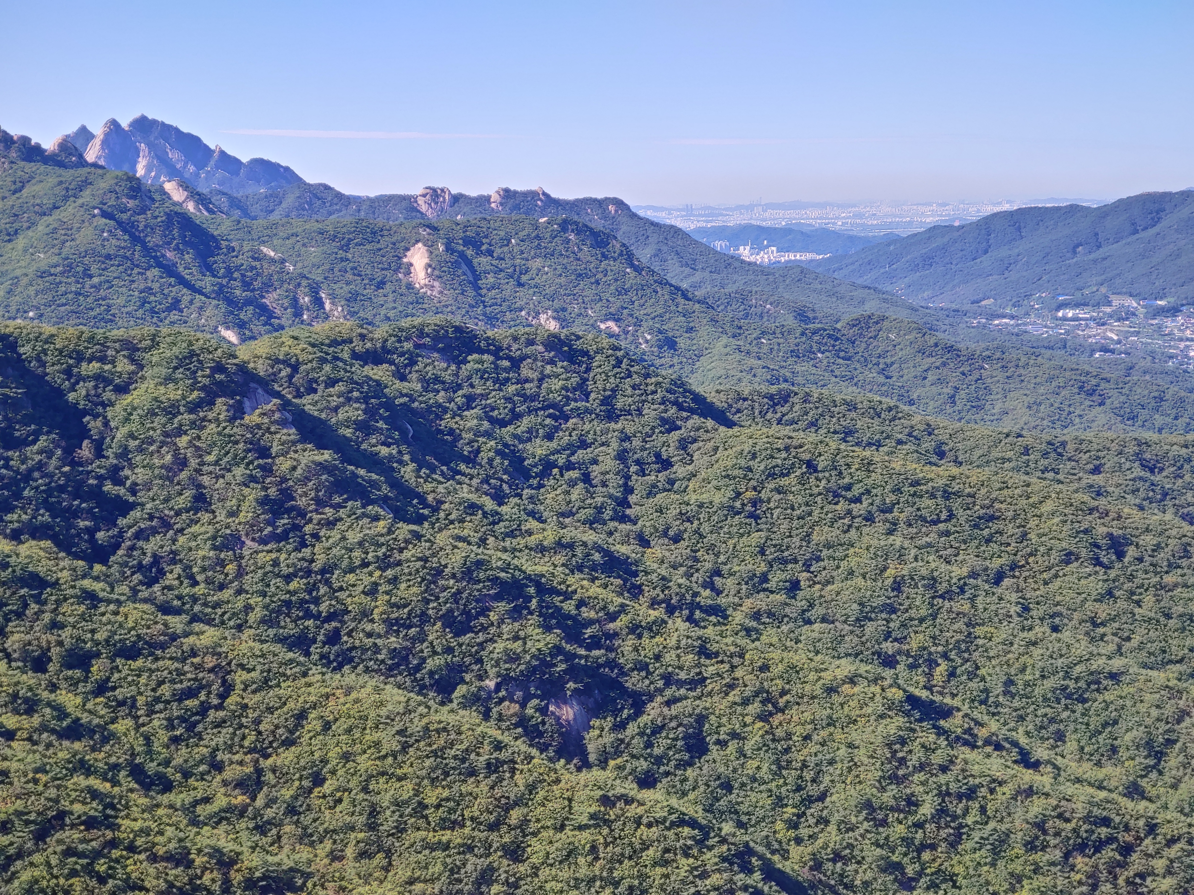 정상으로 가는 길에 찍은 사진입니다. 수락산 방향인 것 같습니다.