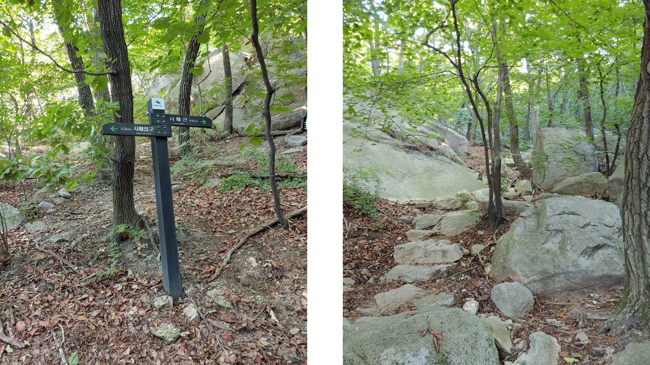 원각사 방향의 등산로는 헷갈리는 길은 없습니다. 등산로의 표지판이 잘 되어 있지는 않지만 필요한 곳에 표지판이 있고 갈림길이 없고 다른 곳으로 오르는 등산로가 없어 헷갈리지는 않습니다.